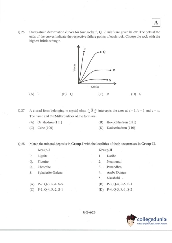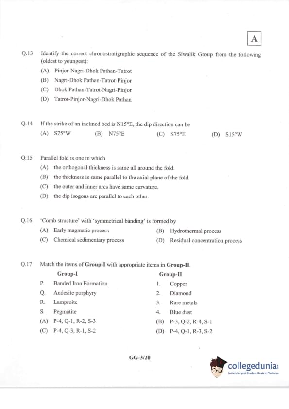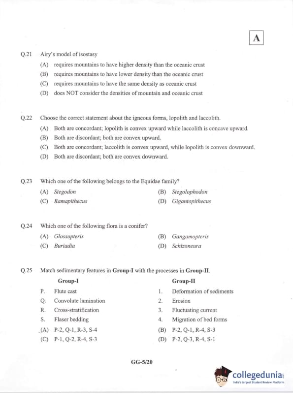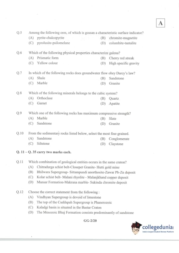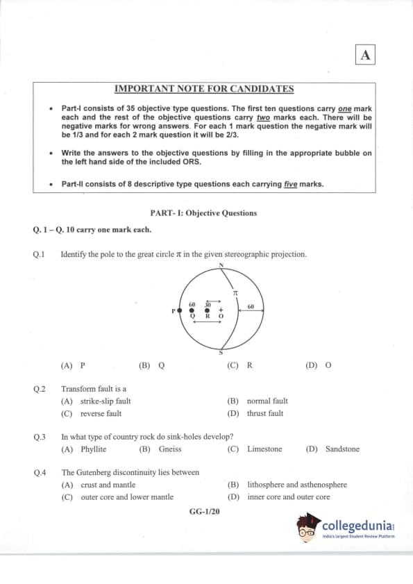 IIT JAM 2014 Geology (GG) Question Paper with Answer Key PDFs Forenoon Session