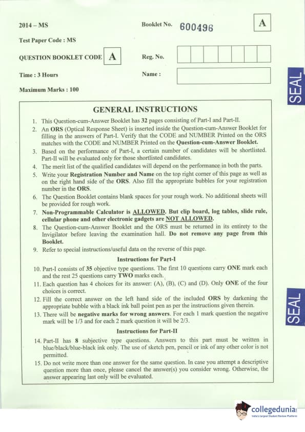 | IIT JAM 2014 Mathematical Statistics (MS) Question Paper PDF | IIT JAM 2014 Mathematical Statistics (MS) Answer Key PDF |