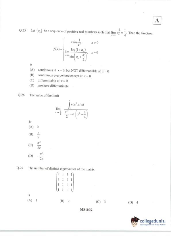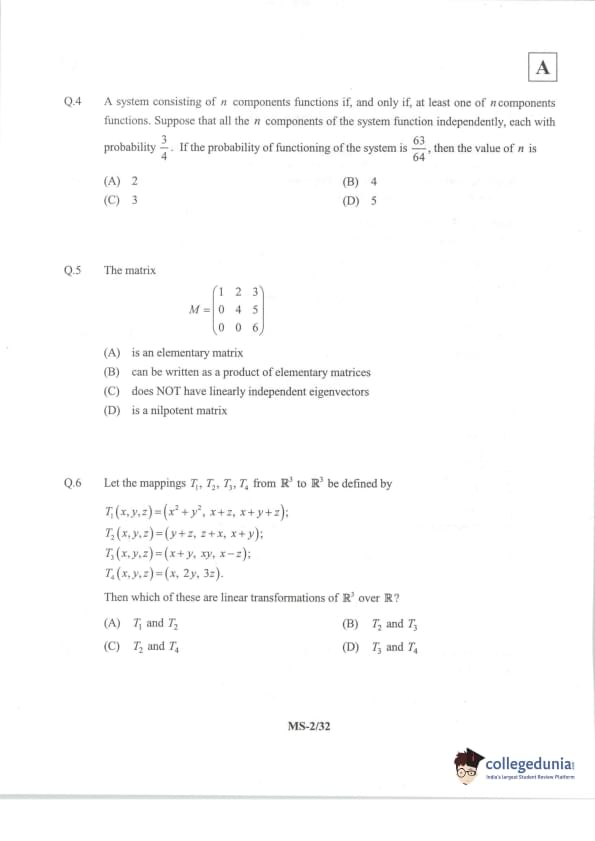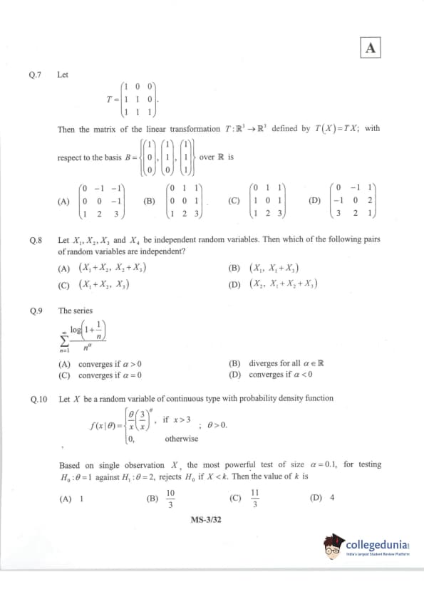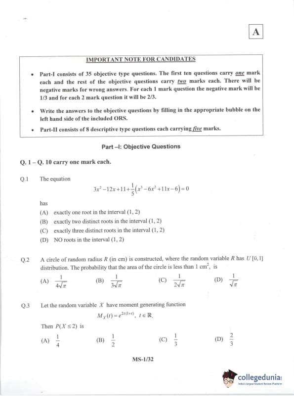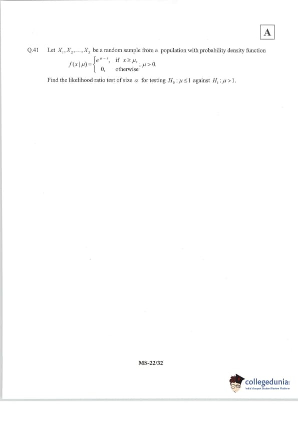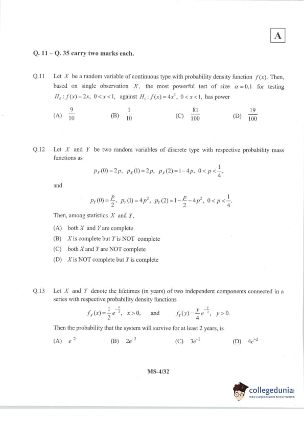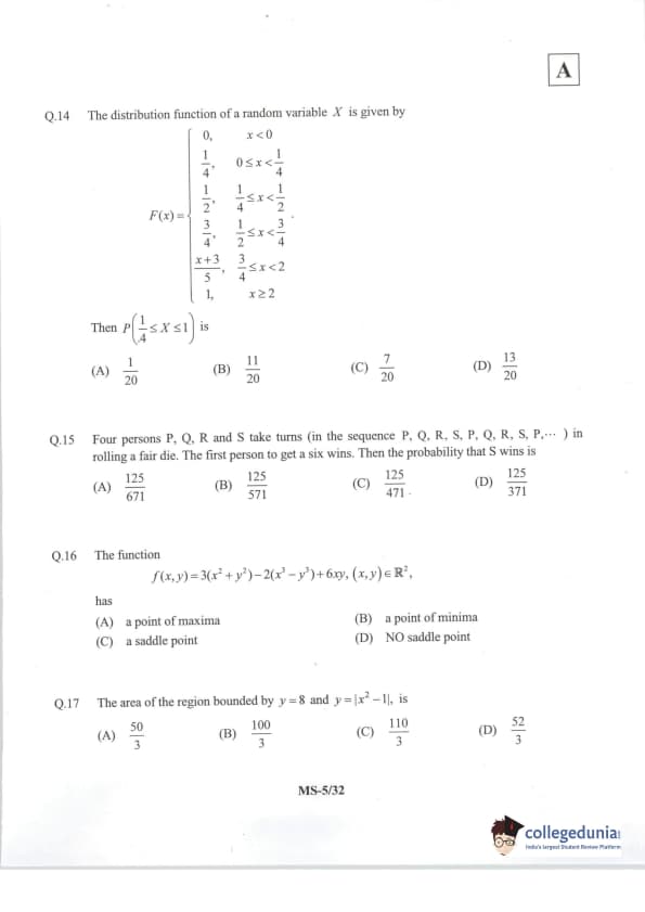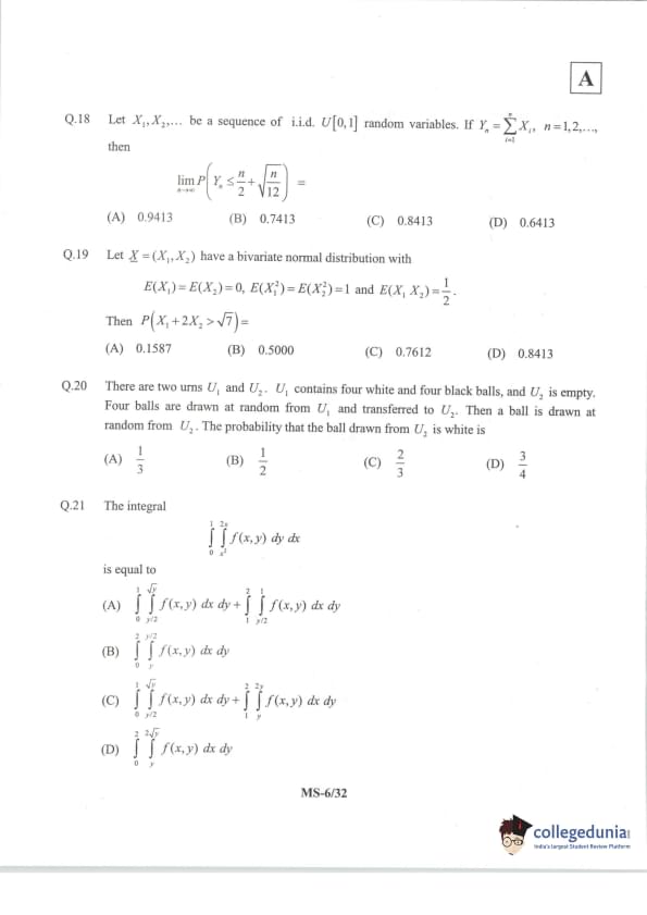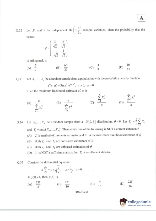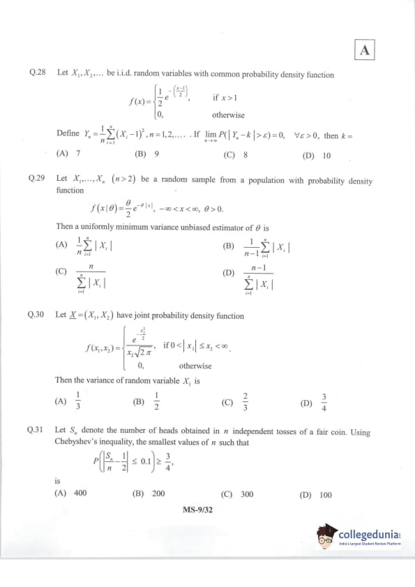 IIT JAM 2014 Mathematical Statistics (MS) Question Paper with Answer Key PDFs Afternoon Session