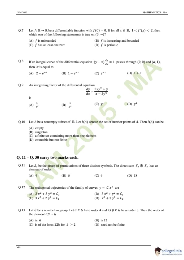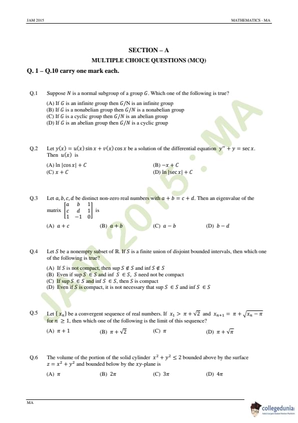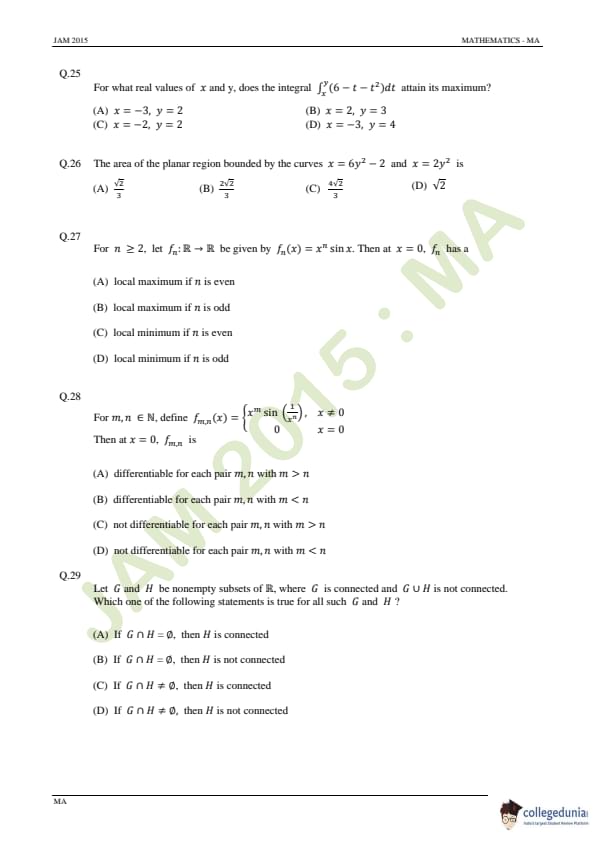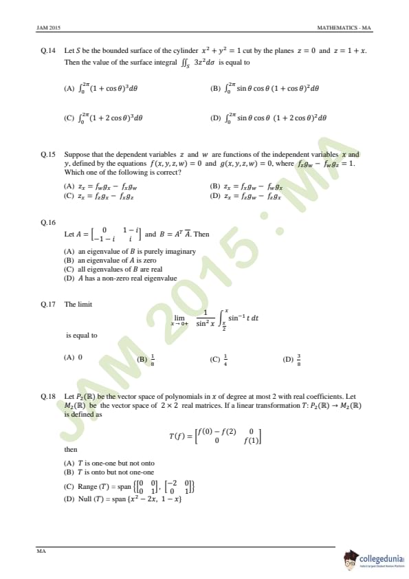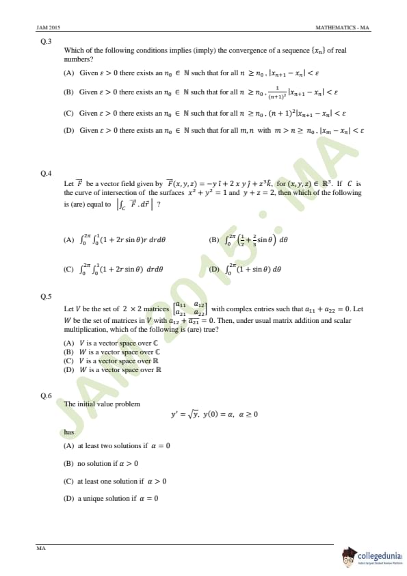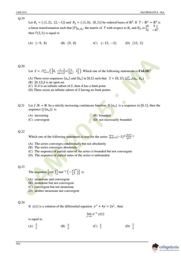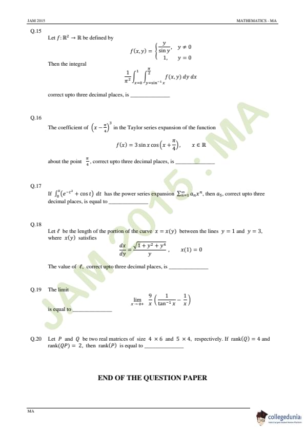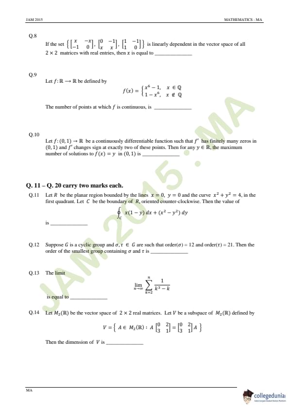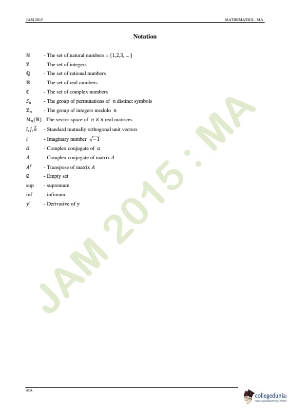 IIT JAM 2015 Mathematics (MA) Question Paper with Answer Key PDFs Forenoon Session