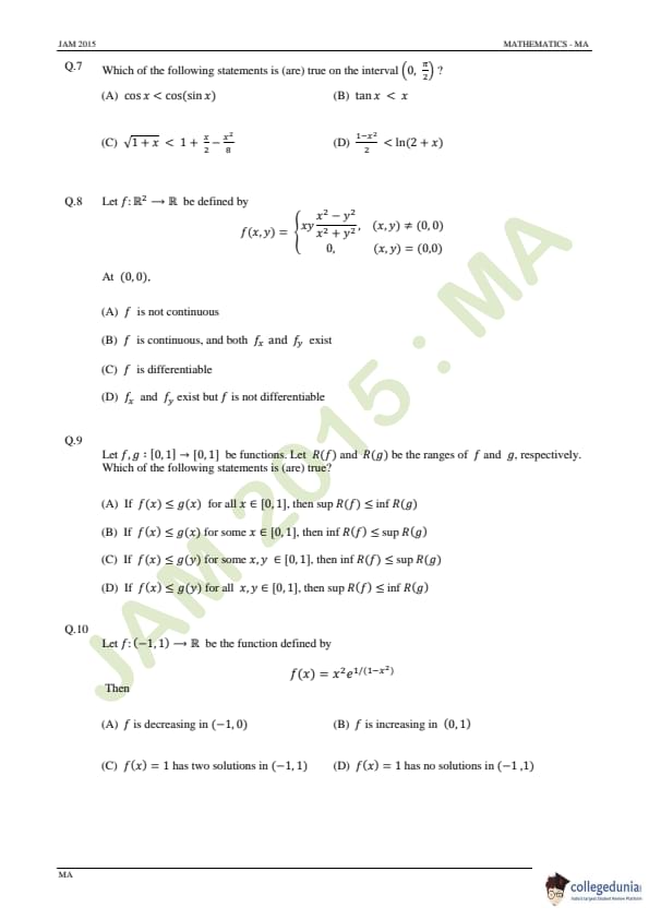 | IIT JAM 2015 Mathematics (MA) Question Paper PDF | IIT JAM 2015 Mathematics (MA) Answer Key PDF |