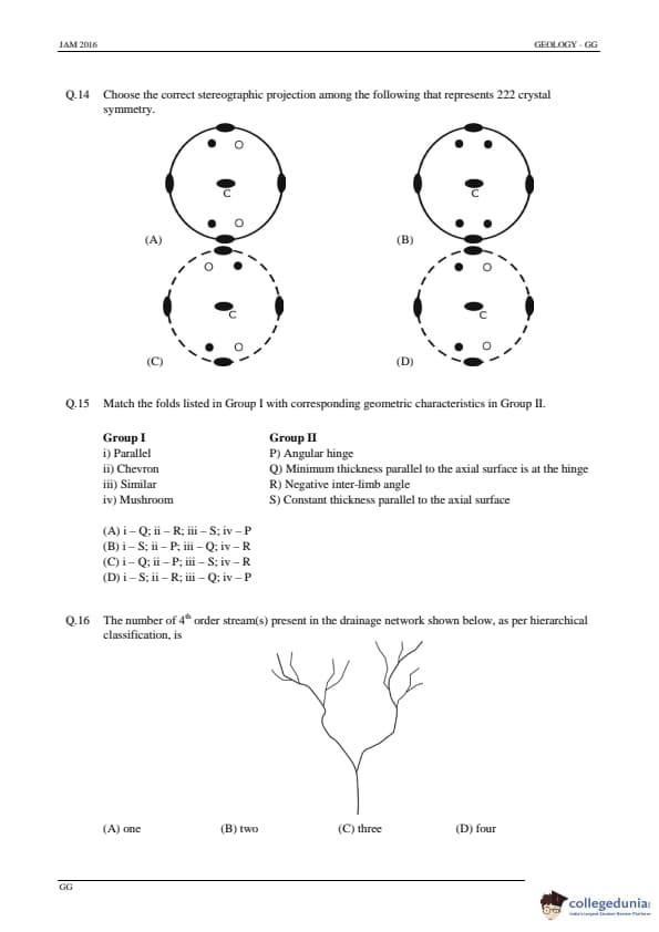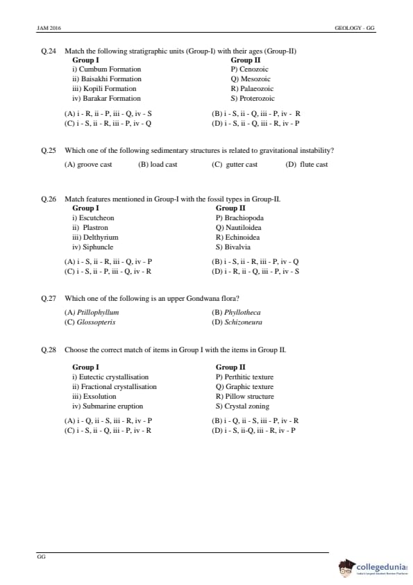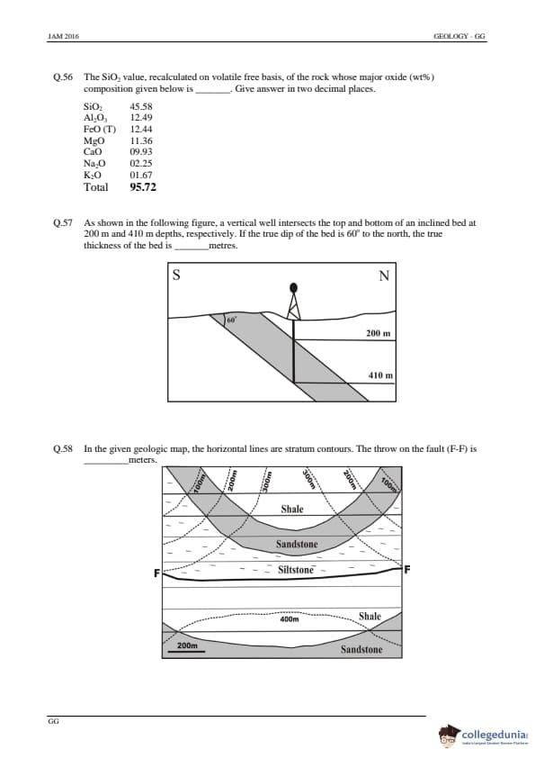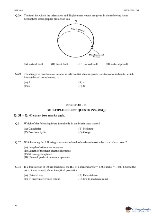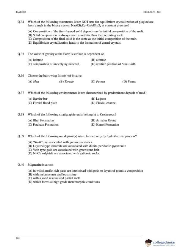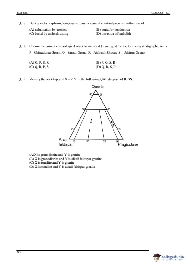 IIT JAM 2016 Geology (GG) Question Paper with Answer Key PDFs Afternoon Session