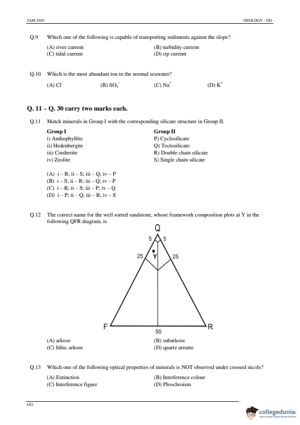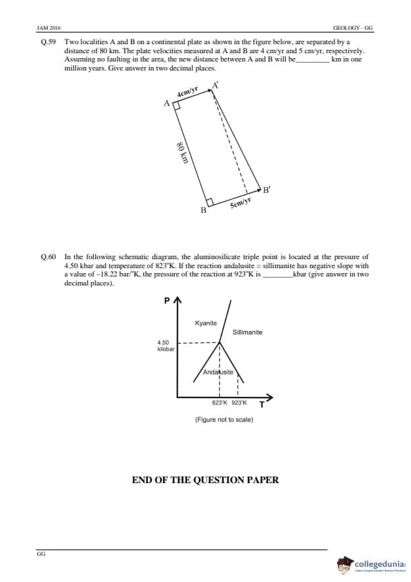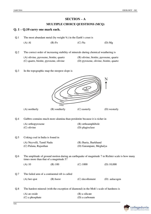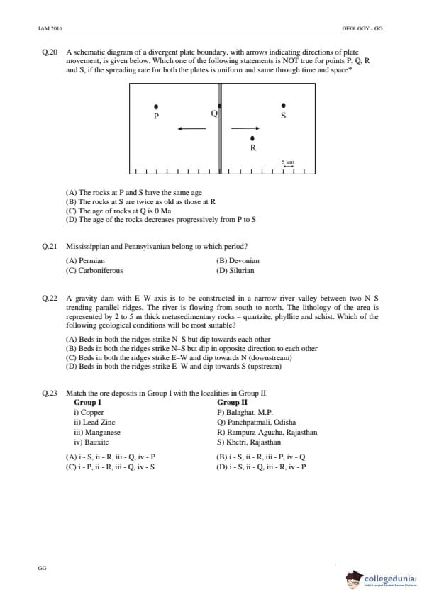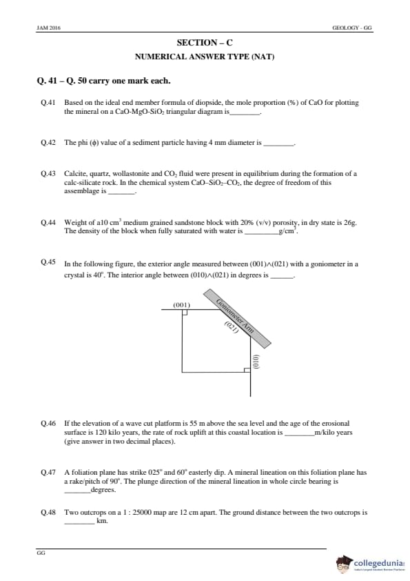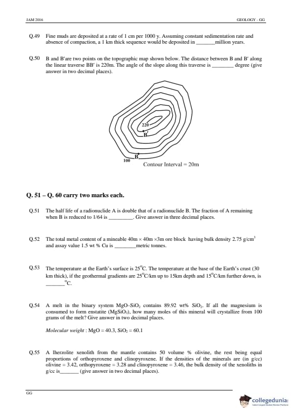 IIT JAM 2016 Geology (GG) Question Paper with Answer Key PDFs Afternoon Session