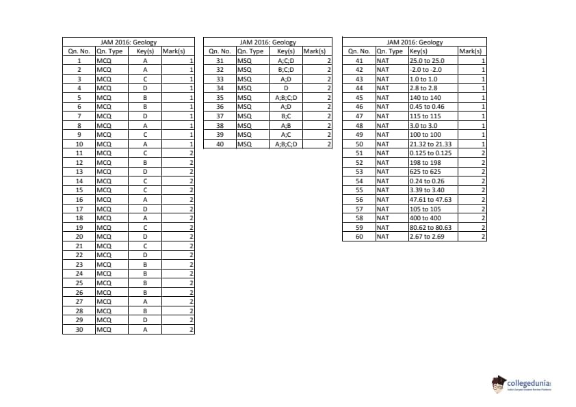 | IIT JAM 2016 Geology (GG) Question Paper PDF | IIT JAM 2016 Geology (GG) Answer Key PDF |