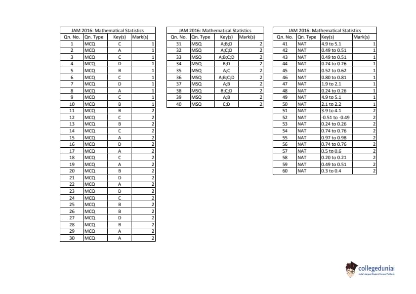 | IIT JAM 2016 Mathematical Statistics (MS) Question Paper PDF | IIT JAM 2016 Mathematical Statistics (MS) Answer Key PDF |