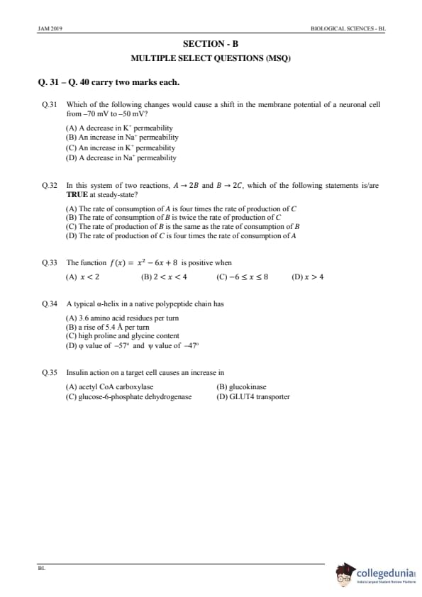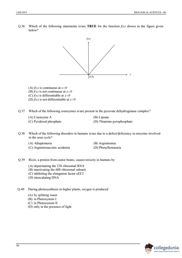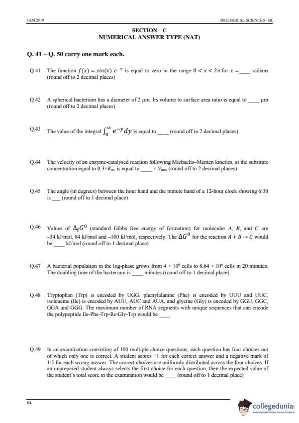 | IIT JAM 2019 Biological Sciences (BL) Question paper with answer key PDF | Download PDF | Check Solutions |