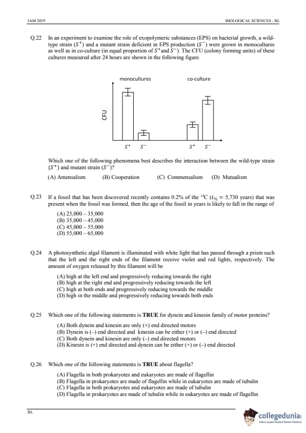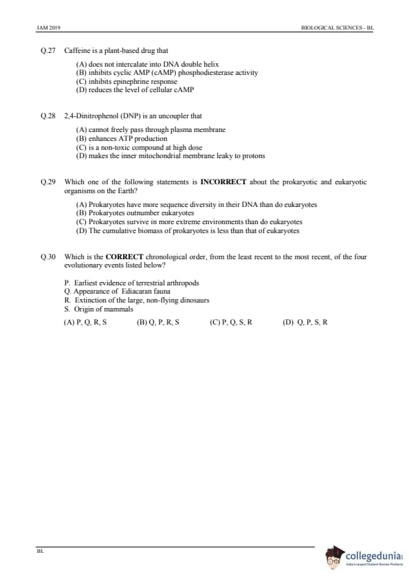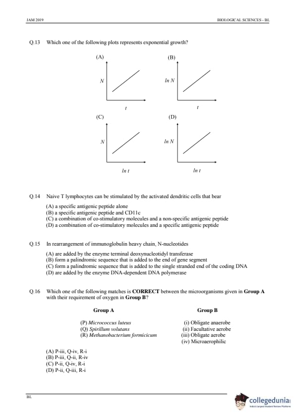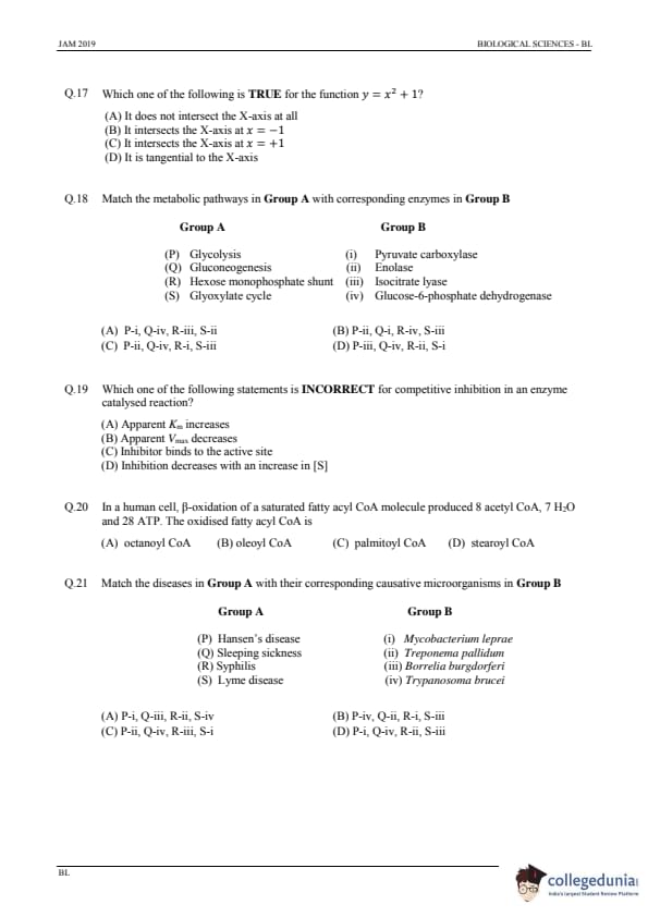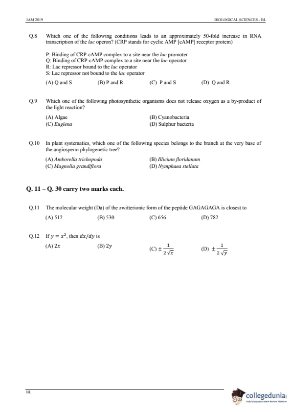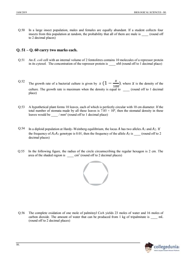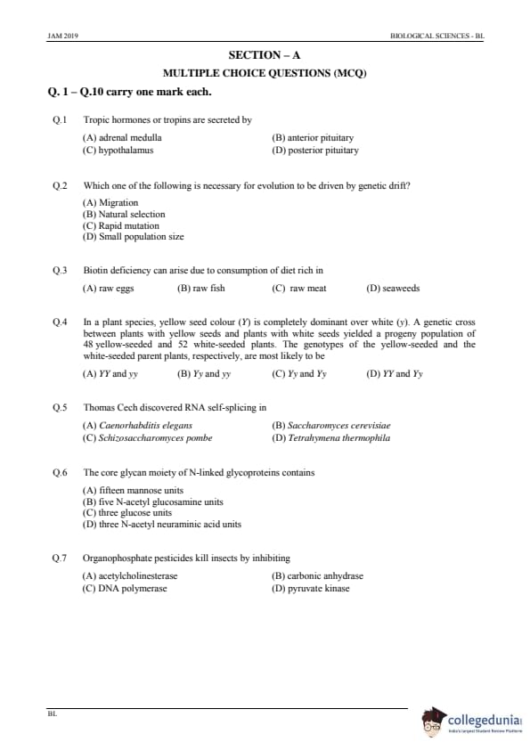 IIT JAM 2019 Biological Sciences (BL) Question Paper with Answer Key PDFs Forenoon Session