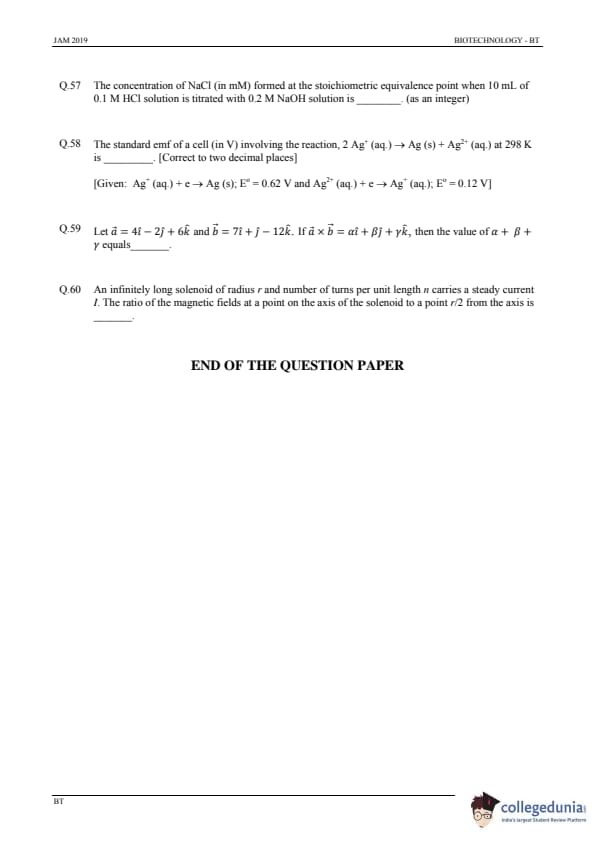 | IIT JAM 2019 Biotechnology (BT) Question paper with answer key PDF | Download PDF | Check Solutions |