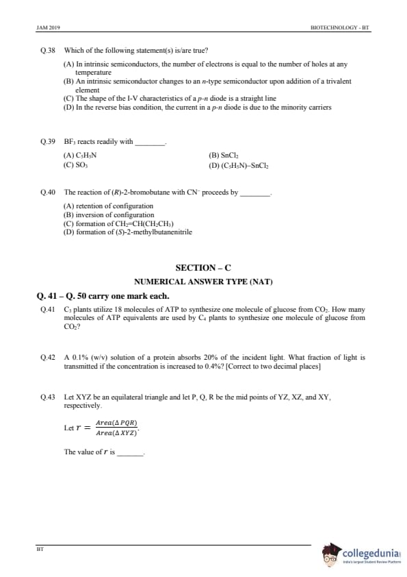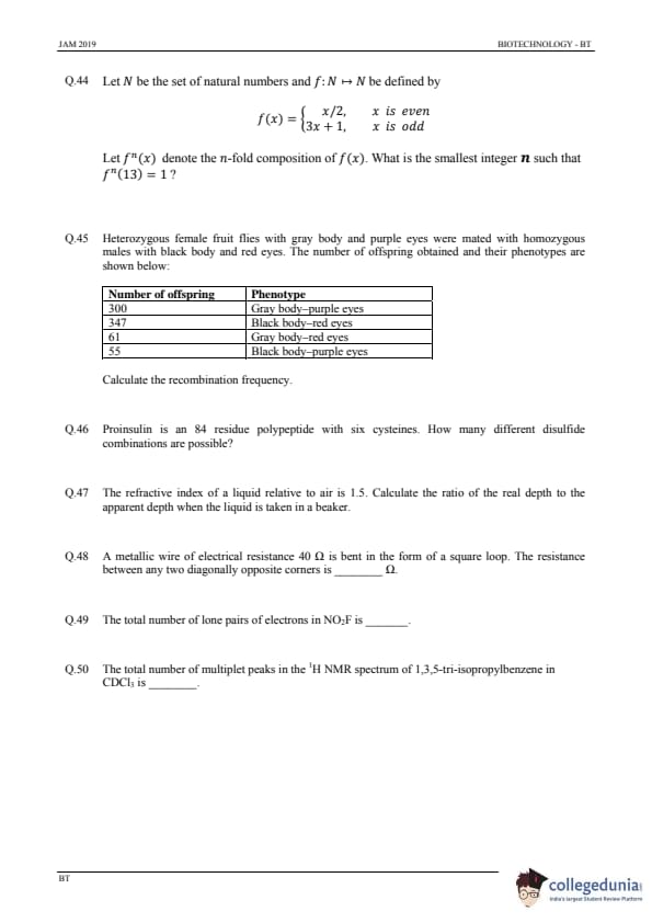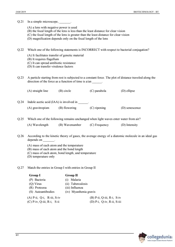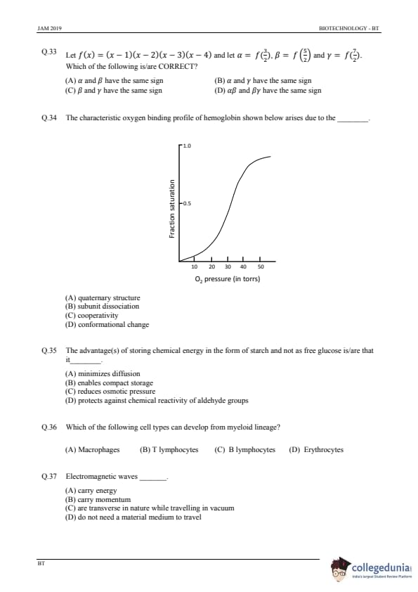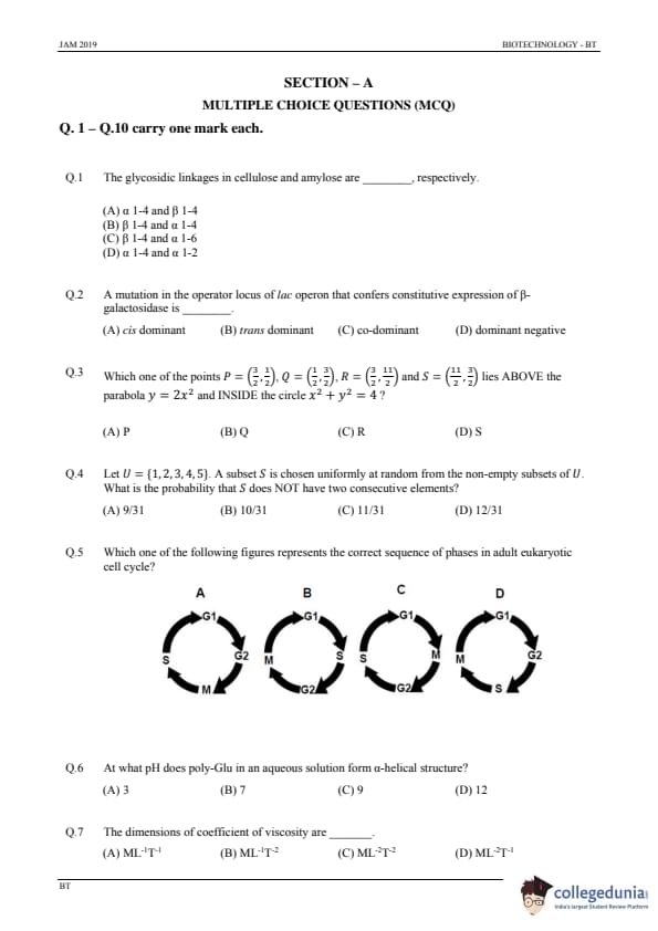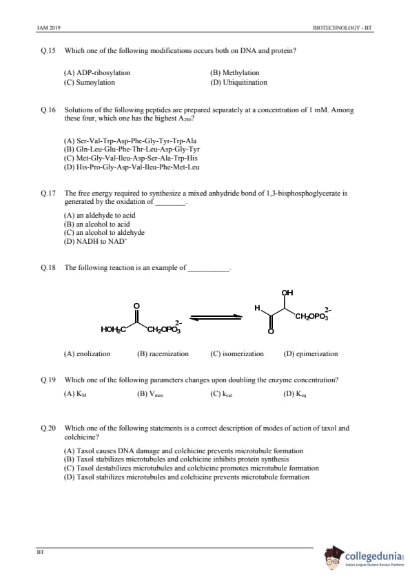 IIT JAM 2019 Biotechnology (BT) Question Paper with Answer Key PDFs Afternoon Session