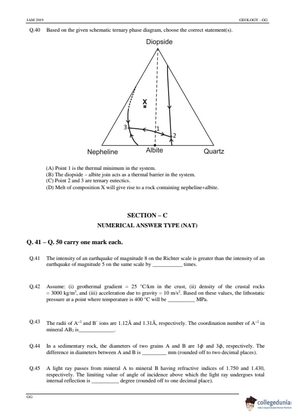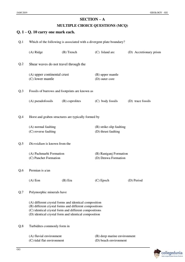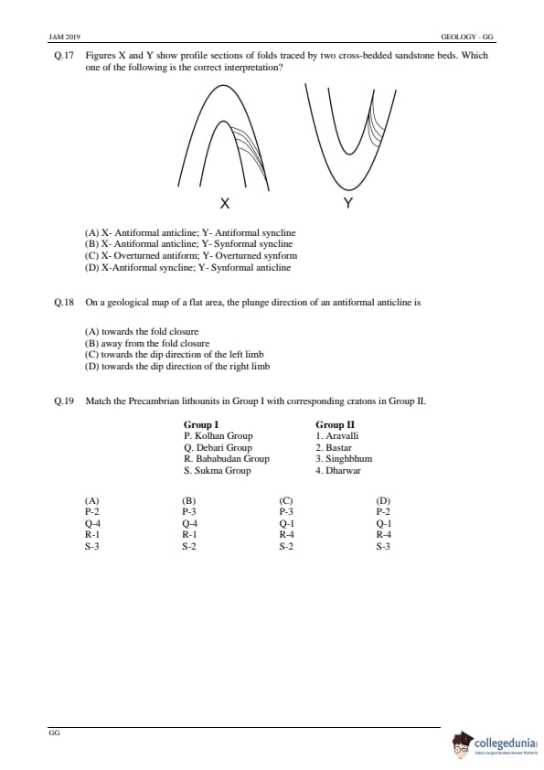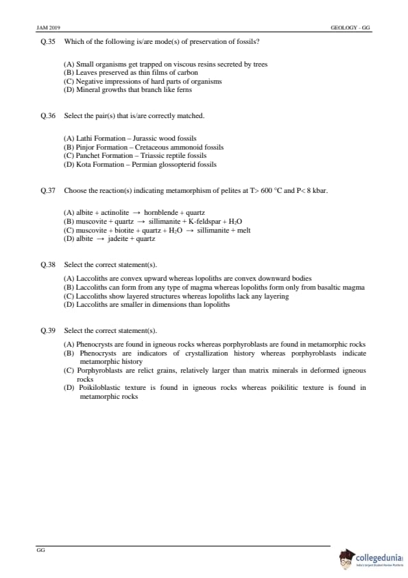 | IIT JAM 2019 Geology (GG) Question paper with answer key PDF | Download PDF | Check Solutions |