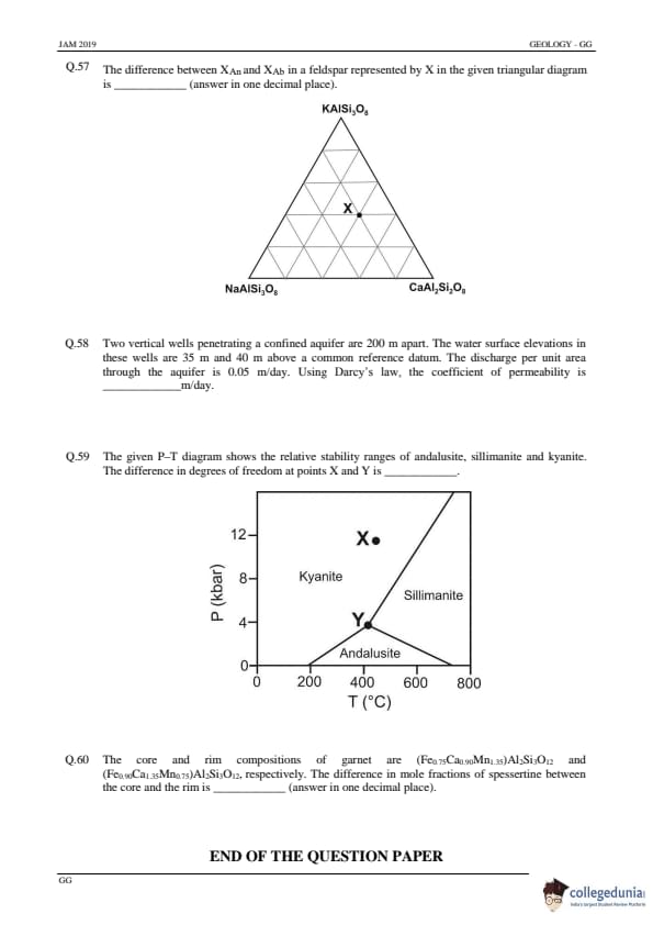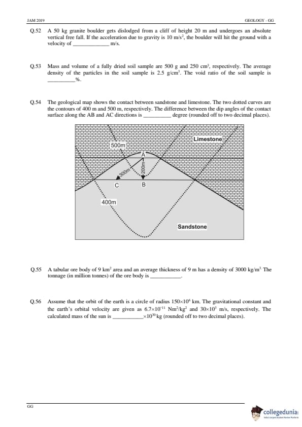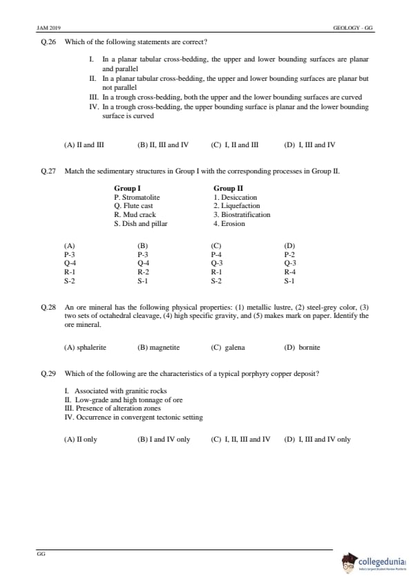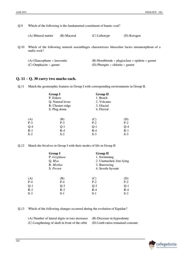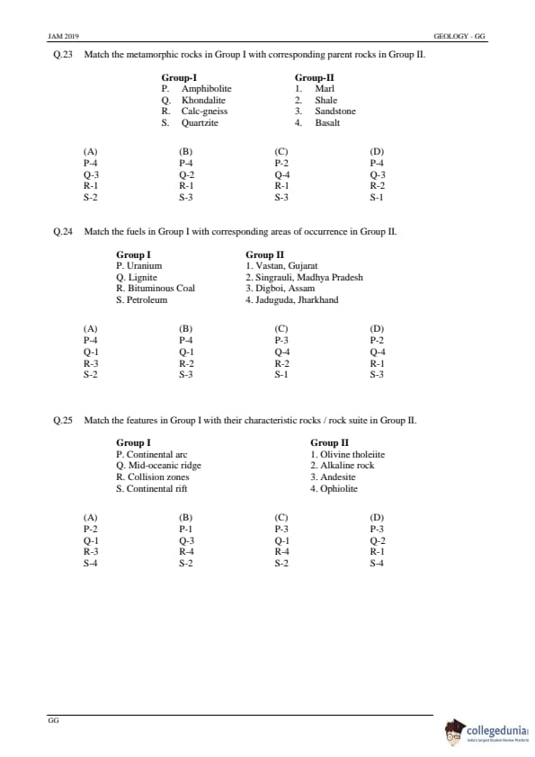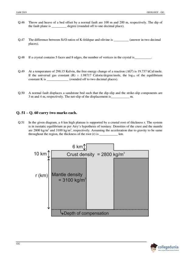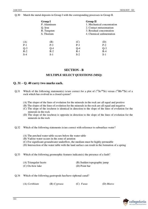 IIT JAM 2019 Geology (GG) Question Paper with Answer Key PDFs Afternoon Session
