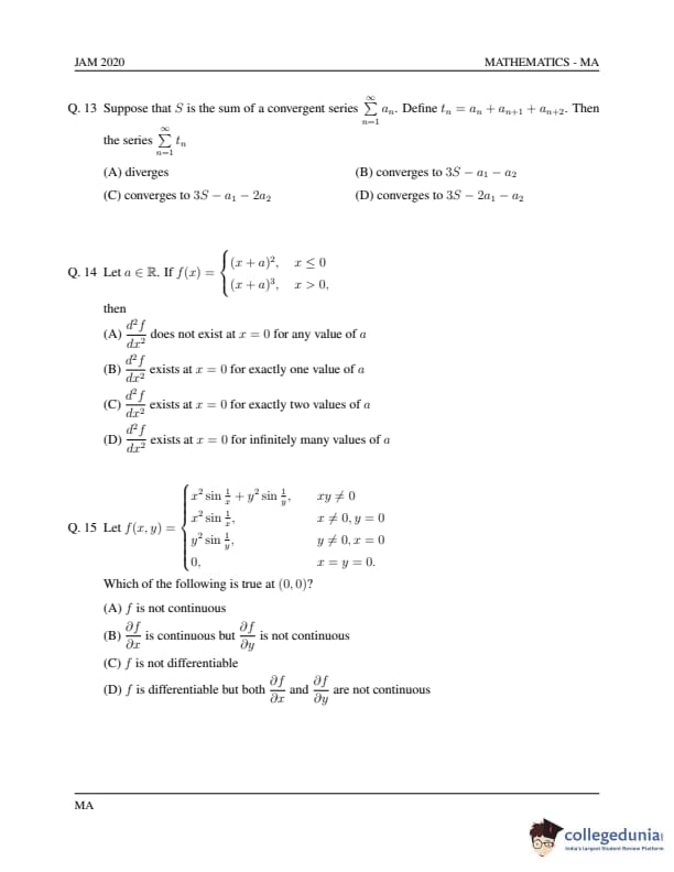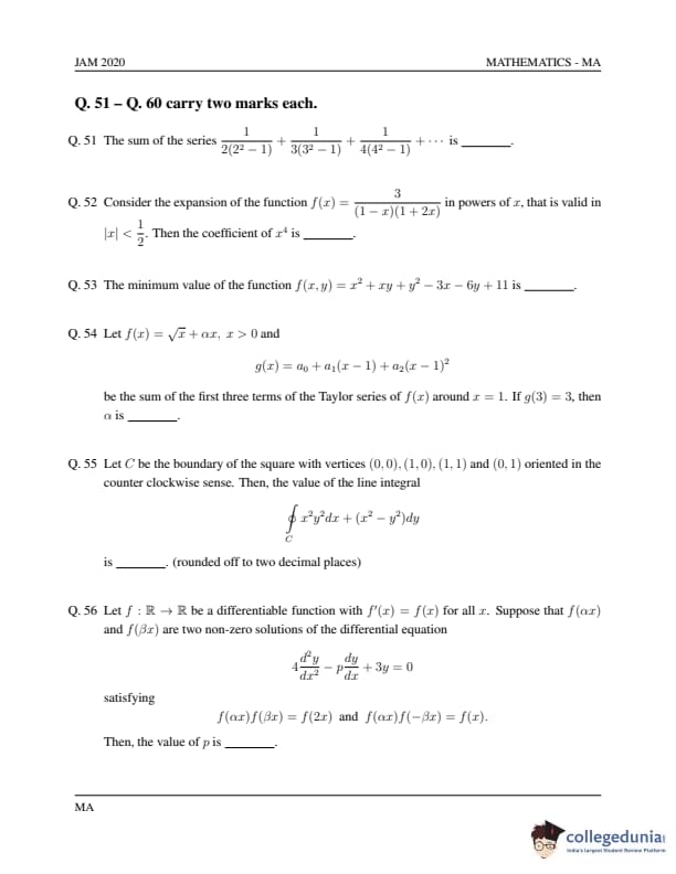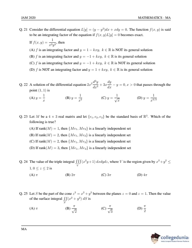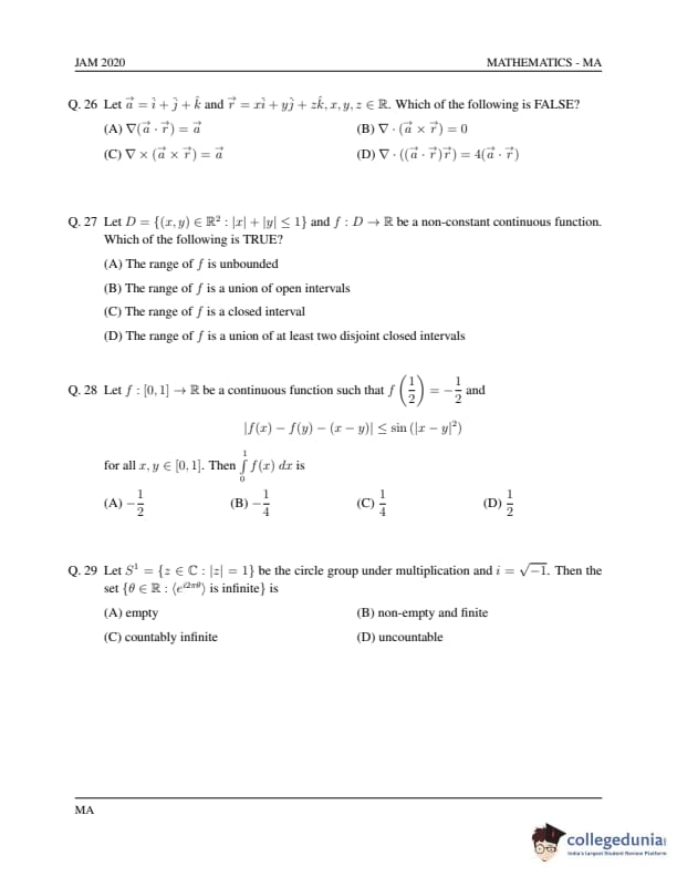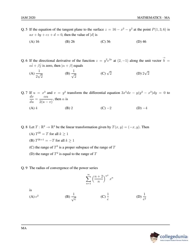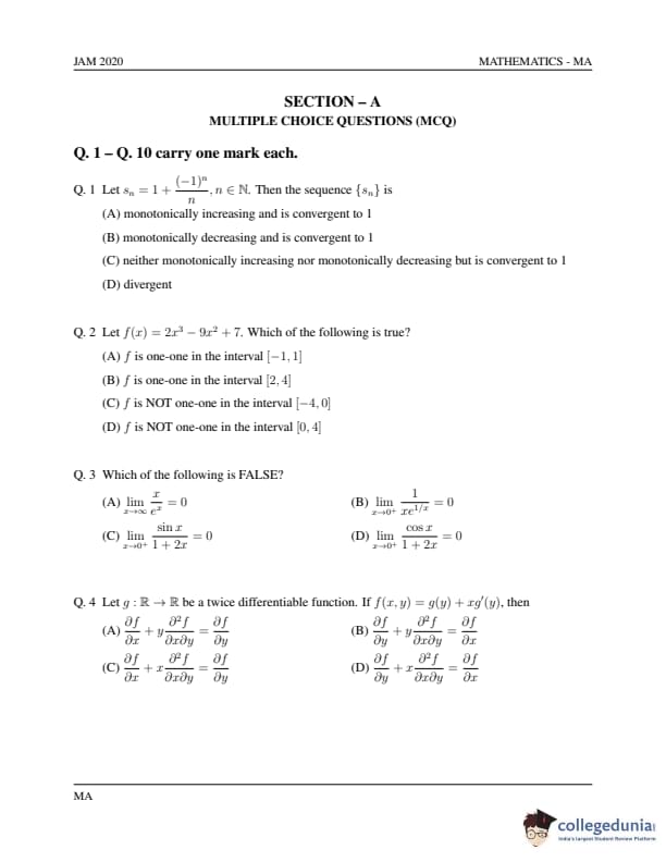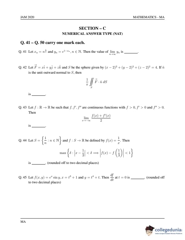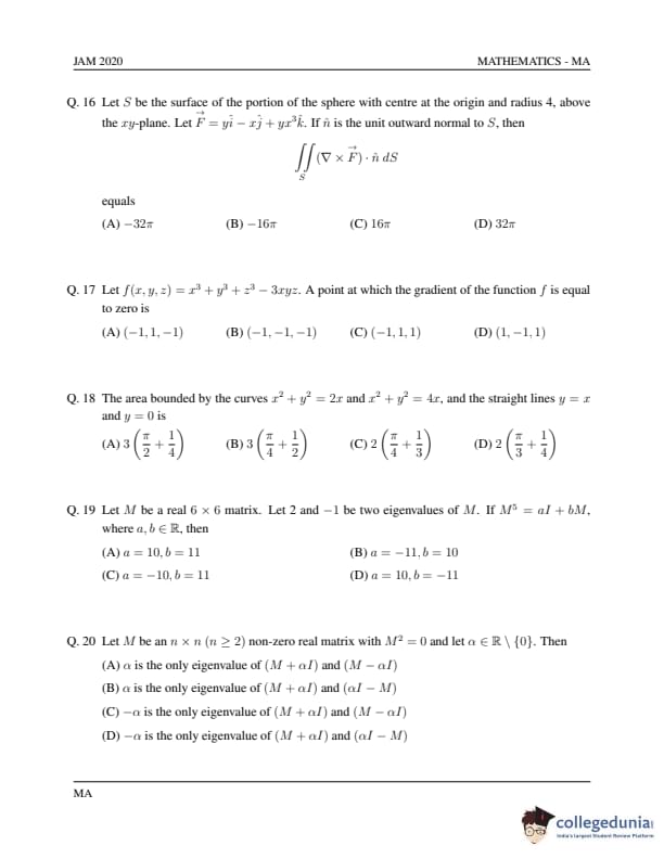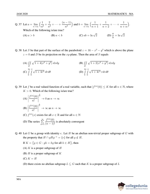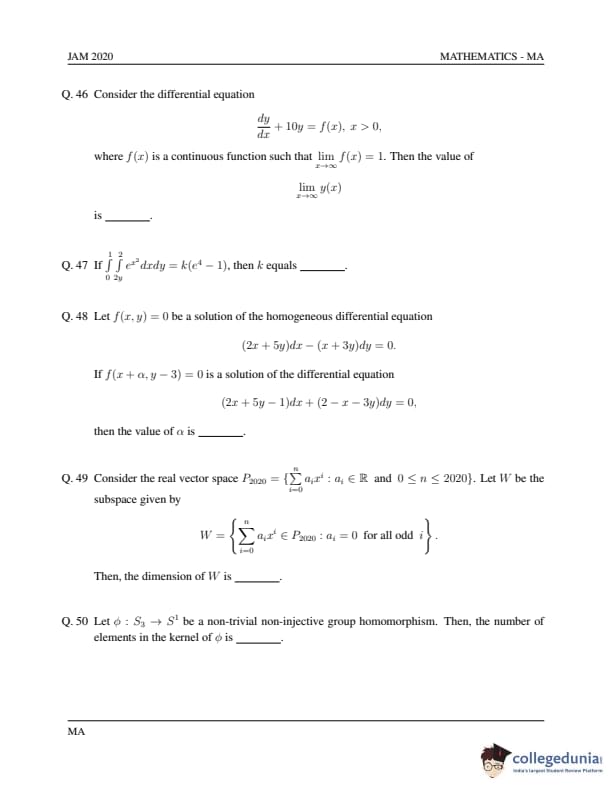 | IIT JAM 2020 Mathematics (MA) Question paper with answer key PDF | Download PDF | Check Solutions |