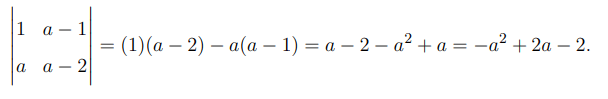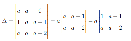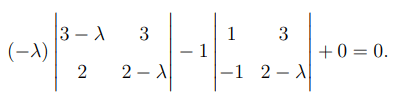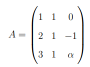 \[ \det(A) = 1(1\alpha - (-1)\times1) - 1(2\alpha - (-1)\times3) + 0(...) = \alpha + 1 - (2\alpha + 3) = -\alpha - 2 \]