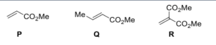 The rate of addition of 1-hexyl radical to the given molecules follows the order: