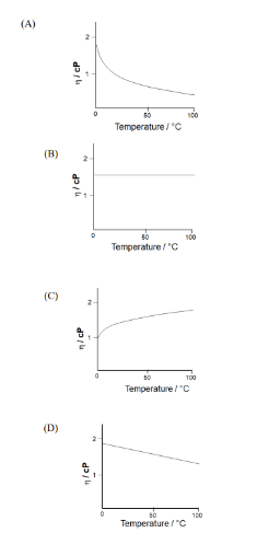 The diagram that best describes the variation of viscosity (\(\eta\)) of water with temperature at 1 atm is