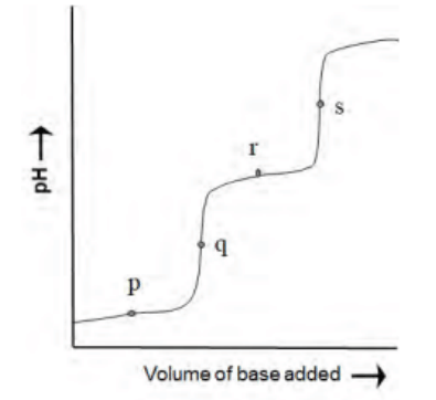 The following diagram is obtained in a pH-metric titration of a weak dibasic acid (H₂A) with a strong base. The point that best represents [HA⁻] = [A²⁻] is