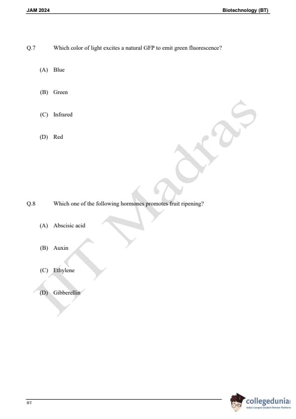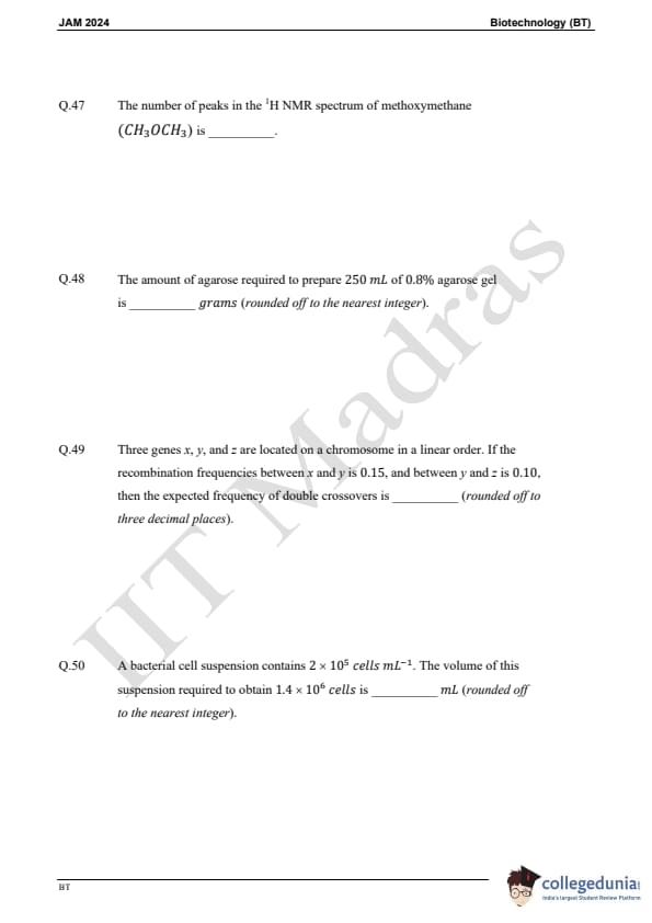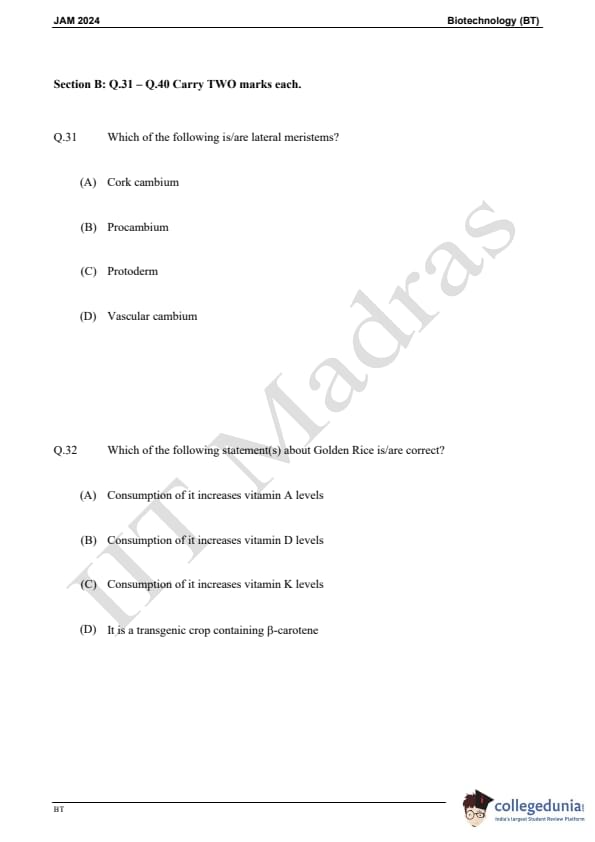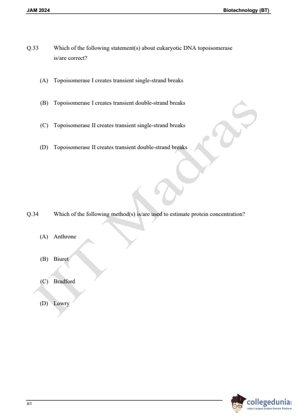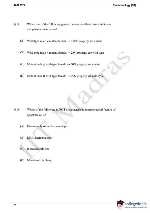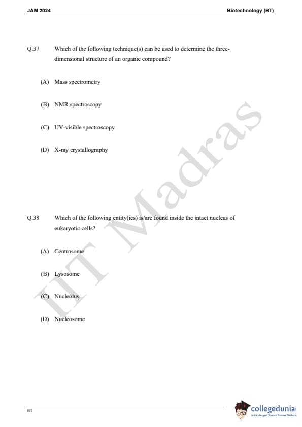 | IIT JAM 2024 Biotechnology Question Paper PDF | Check SolutionsCheck Solutions |