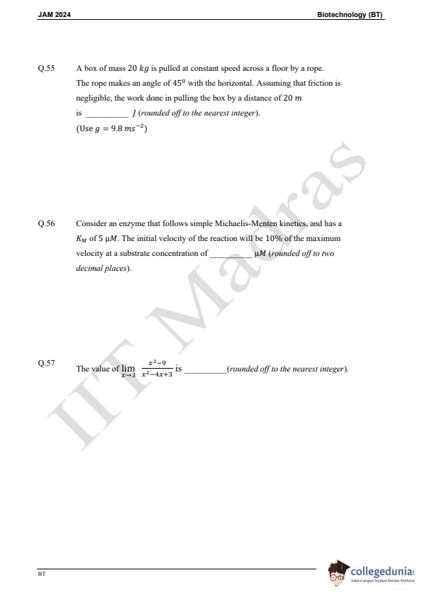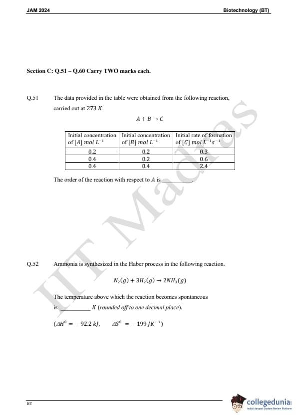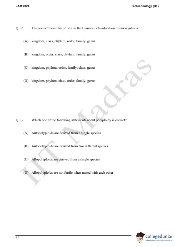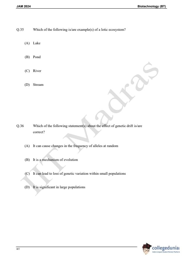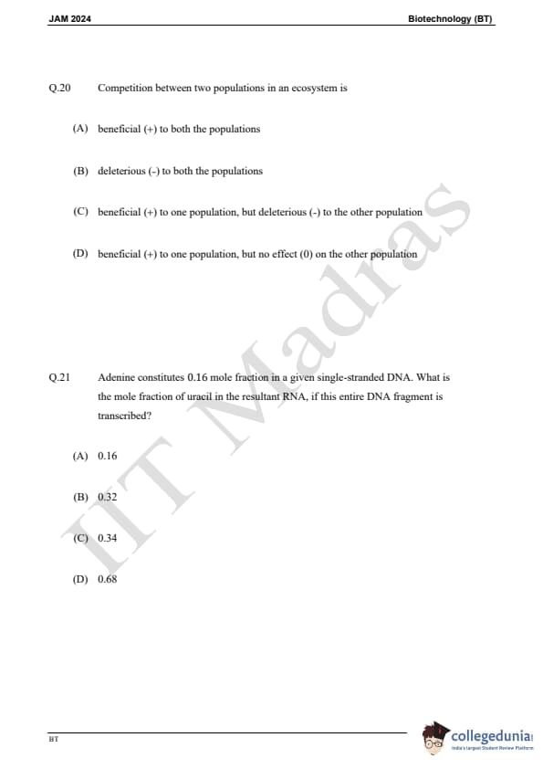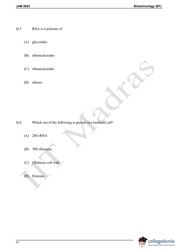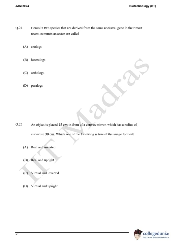| IIT JAM 2024 Biotechnology Question Paper PDF | Check SolutionsCheck Solutions |