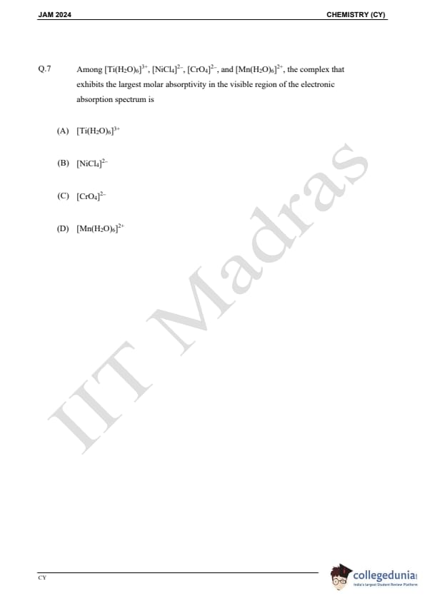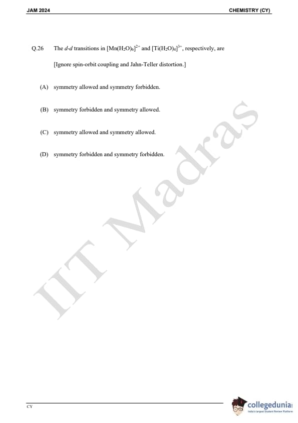 IIT JAM 2024 Chemistry (CY) Question Paper with Solution PDFs