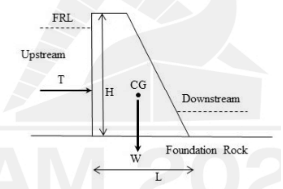 Refer the dam section shown below. Which one of the following conditions represents the most stable state of the dam against rotation about its center of gravity?