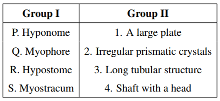 Match the morphological features in Group I with their corresponding descriptions given in Group II.