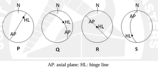 Which of the following stereographic projections represent(s) an upright plunging fold?