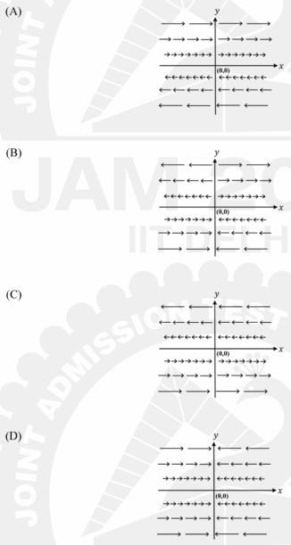 Which one of the following figures represents the vector field \(\mathbf{A} = y\hat{i}\)?