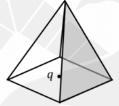 A charge q is placed at the centre of the base of a square pyramid. The net outward electric flux across each of the slanted faces is