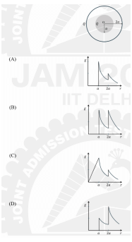 Consider a metal sphere enclosed concentrically within a spherical shell. The inner sphere of radius a carries charge Q. The outer shell of radius 2a also has charge Q. The variation of the magnitude E of the electric field as a function of distance r from the center O is