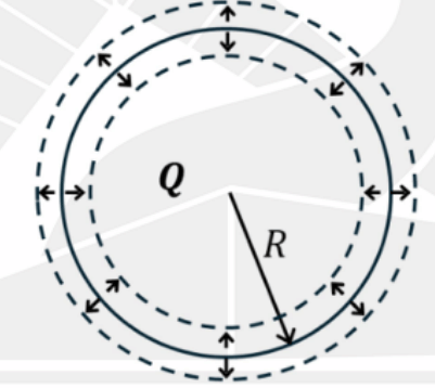 A spherical ball having a uniformly distributed charge Q and radius R pulsates with frequency \(\omega\) such that the radius changes by \(\pm 10%\), as shown in the figure below. Which of the following is(are) correct?