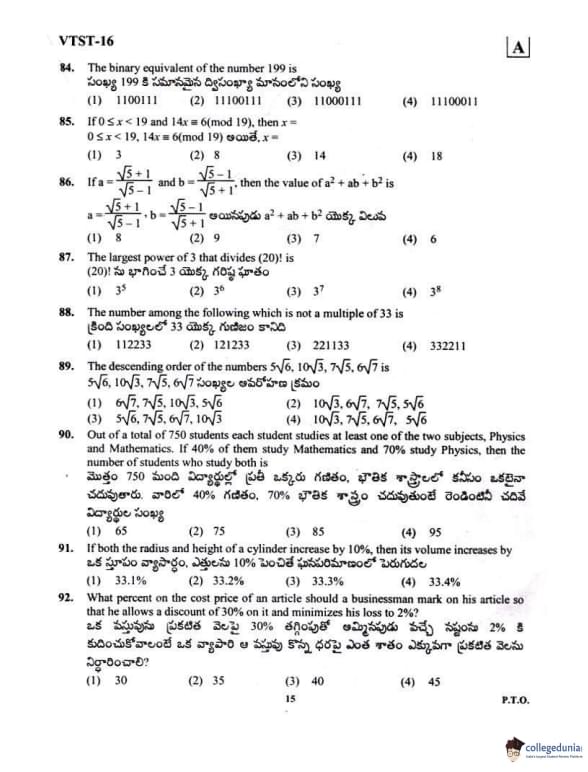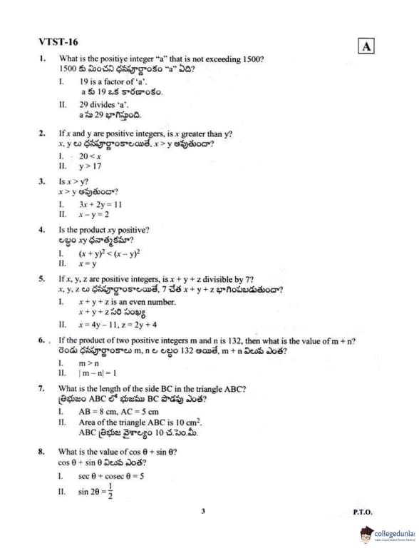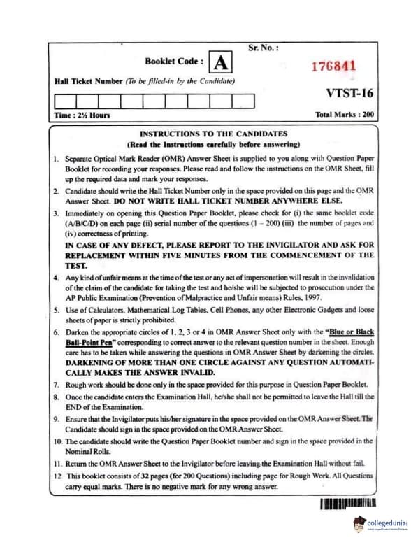 APICET 2016 Question paper with answer key pdf conducted on May 16, 2016 is available for download. The exam was successfully organized by Andhra University, Visakhapatnam. The question paper comprised a total of 200 questions.