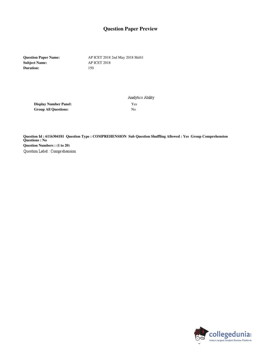 APICET 2018 Question paper with answer key pdf conducted on May 2, 2018 in Shift 1 is available for download. The exam was successfully organized by Andhra University, Visakhapatnam. The question paper comprised a total of 200 questions.
