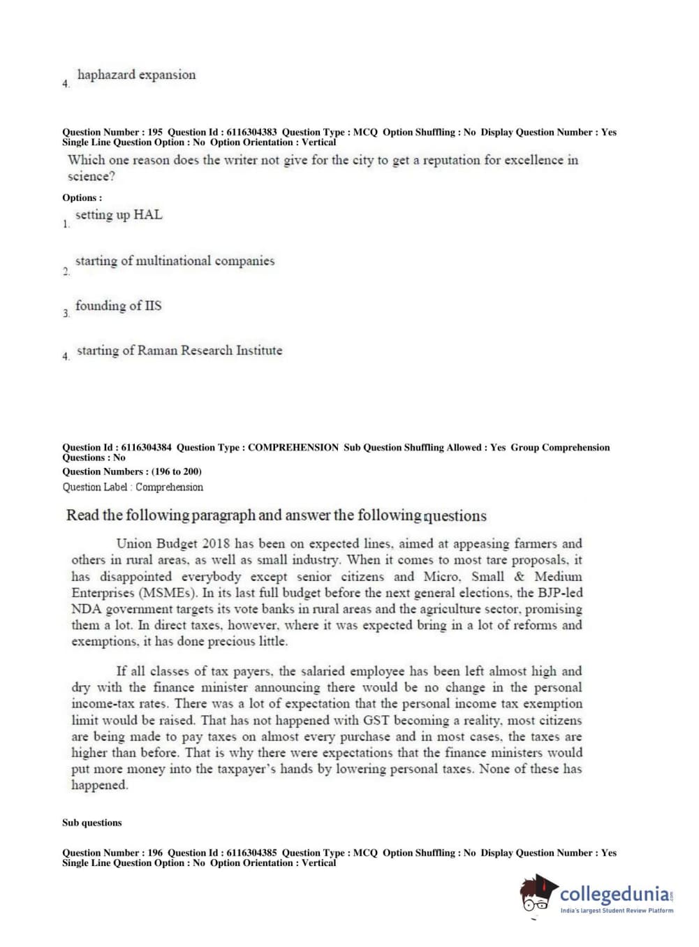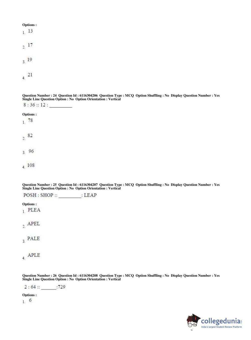 APICET 2018 Question Paper with Answer Key PDFs Shift 1