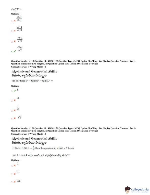 APICET 2020 Question Paper with Answer Key PDFs Shift 1