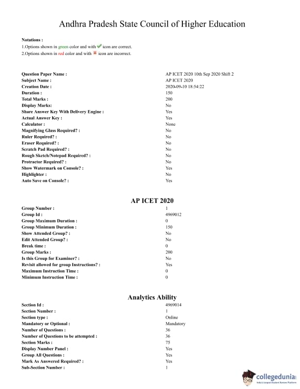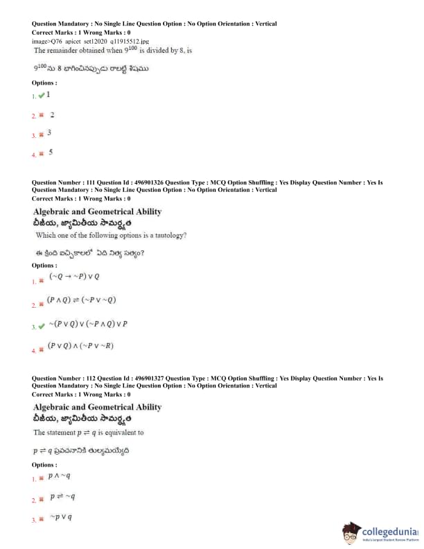 APICET 2020 Question paper with answer key pdf conducted on September 10 in Shift 2 is available for download. The exam was successfully organized by Shri Venkateswara University. The question paper comprised a total of 200 questions.