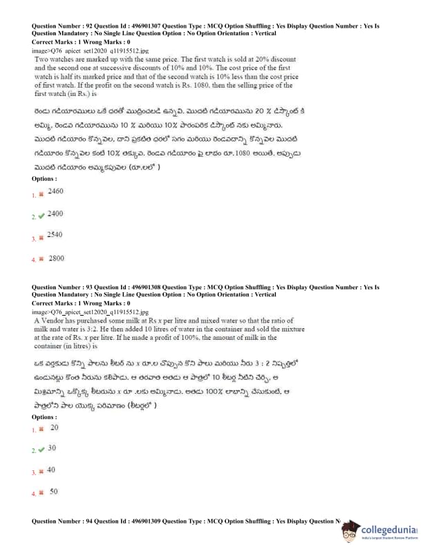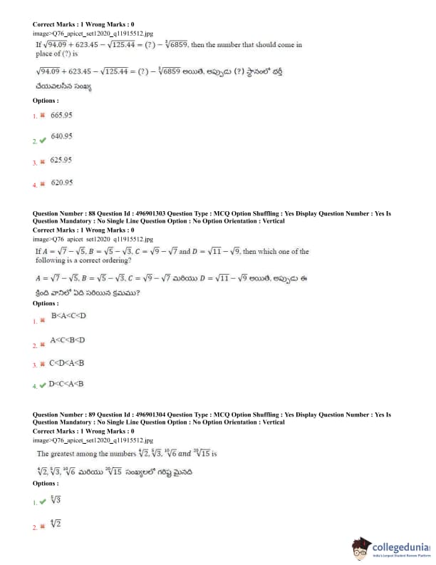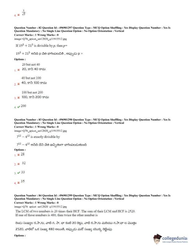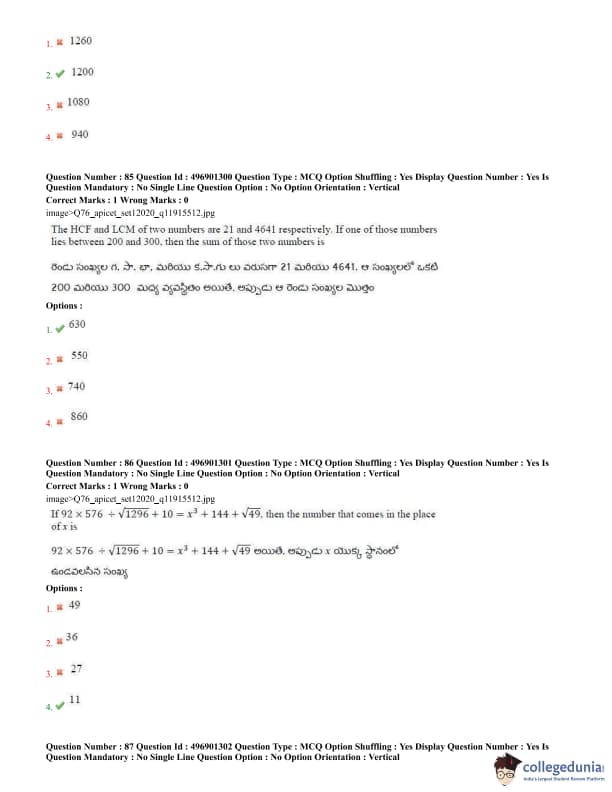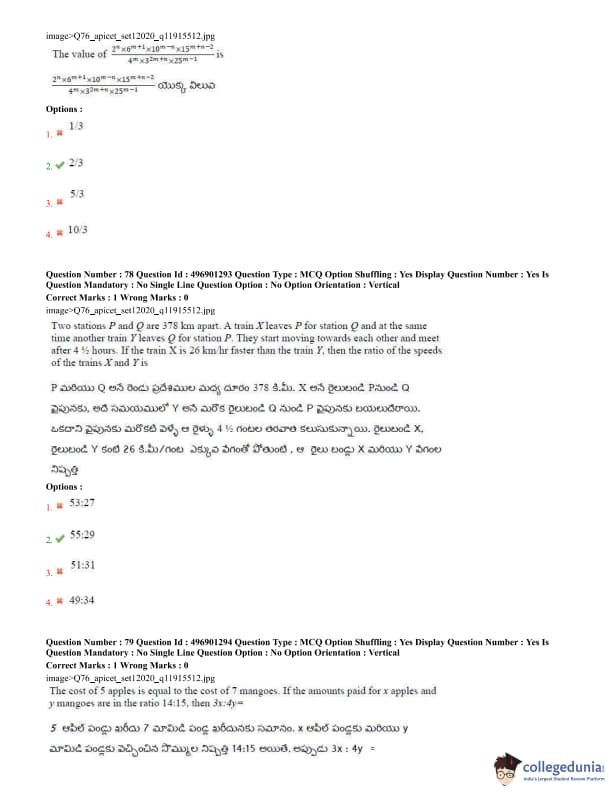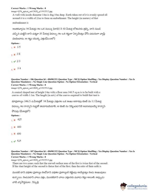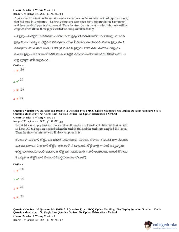 | APICET 2020 Question Paper PDF | APICET 2020 Answer Key PDF |