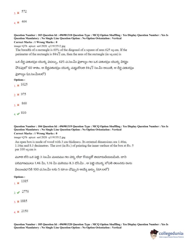 APICET 2020 Question Paper with Answer Key PDFs Shift 2