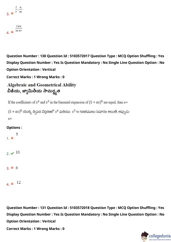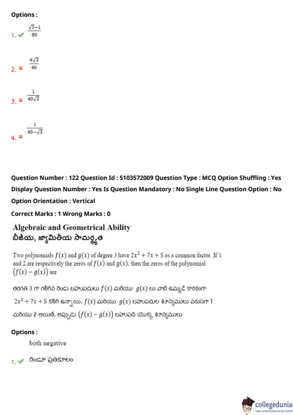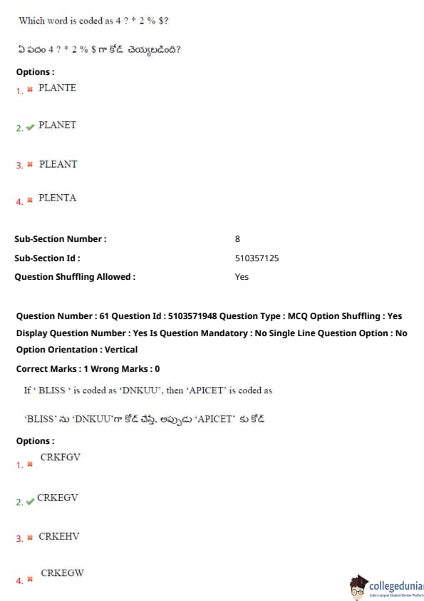 APICET 2020 Question Paper with Answer Key PDFs Shift 1