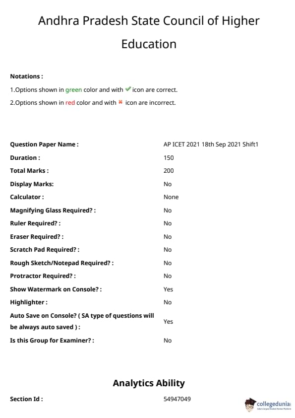 APICET 2021 Question paper with answer key pdf conducted on September 18 Shift 1 is available for download. The exam was successfully organized by Shri Venkateswara University. The question paper comprised a total of 200 questions.