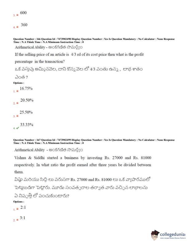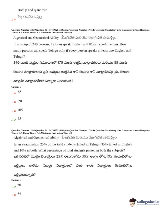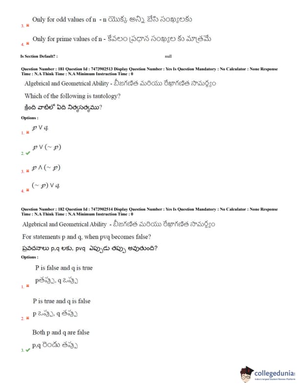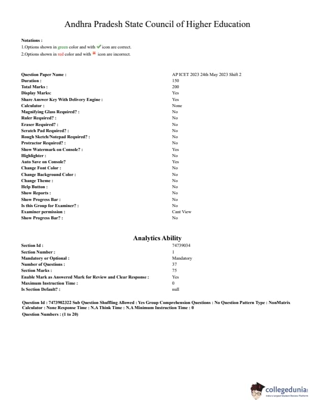 APICET 2023 Question Paper with Answer Key May 24 Shift 2 PDF