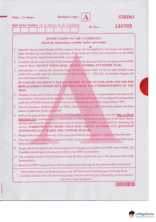 TSICET 2016 Question paper with answer key pdf conducted on May 19, 2016 is available for download. The exam was successfully organized by Kakatiya University, Warangal. The question paper comprised a total of 200 questions.