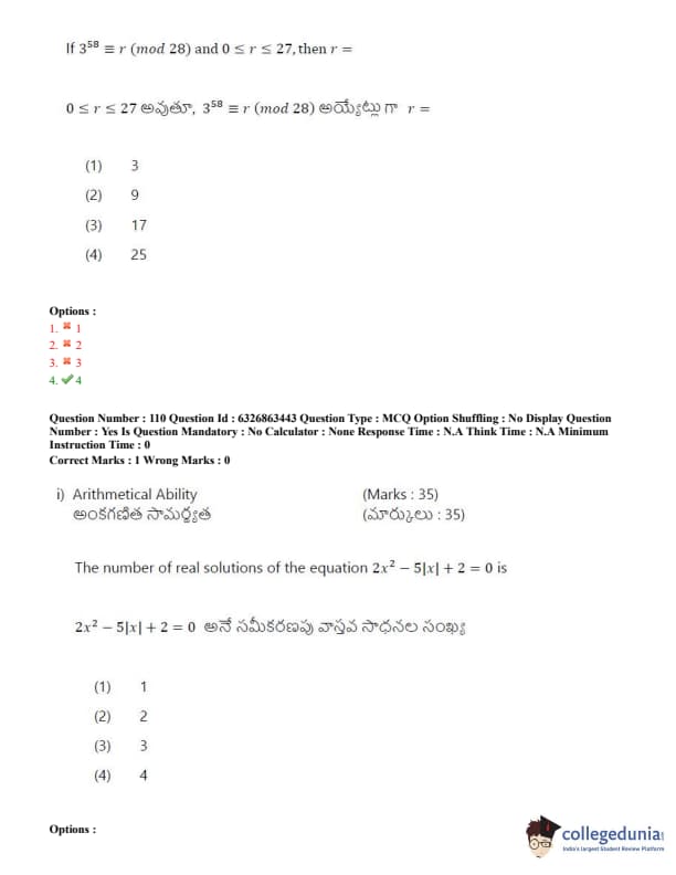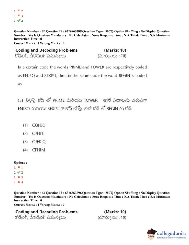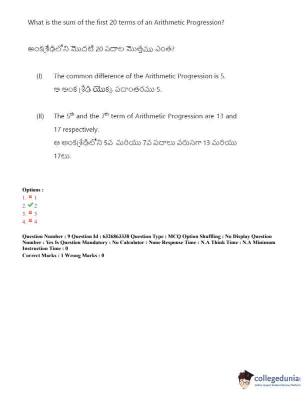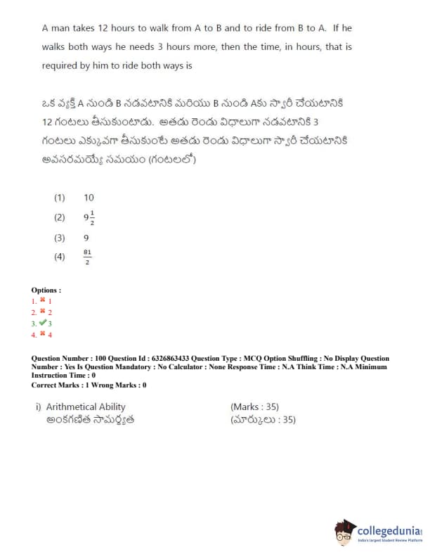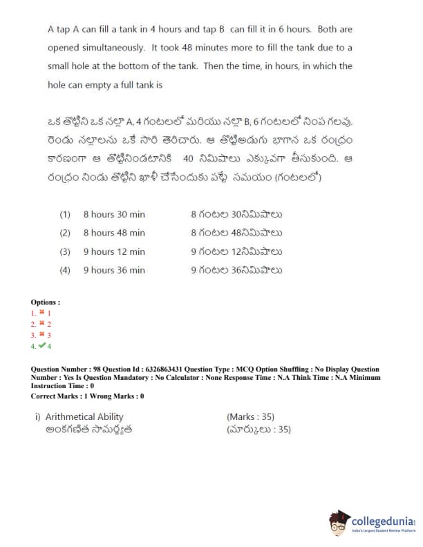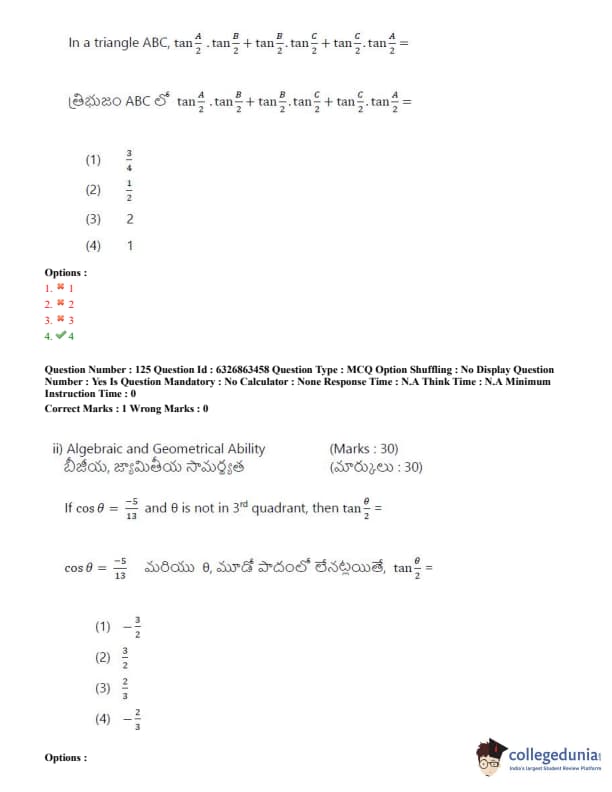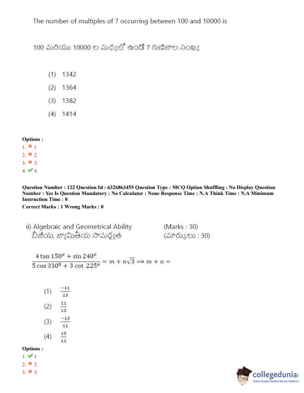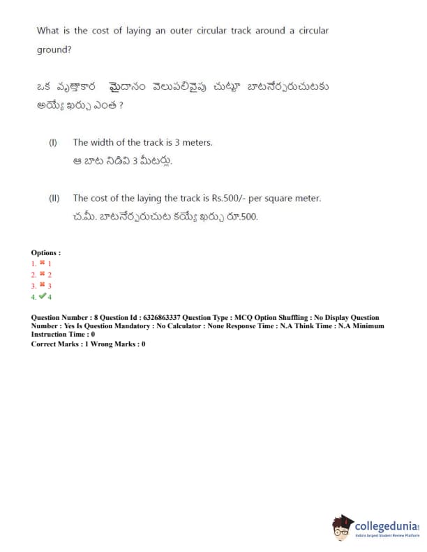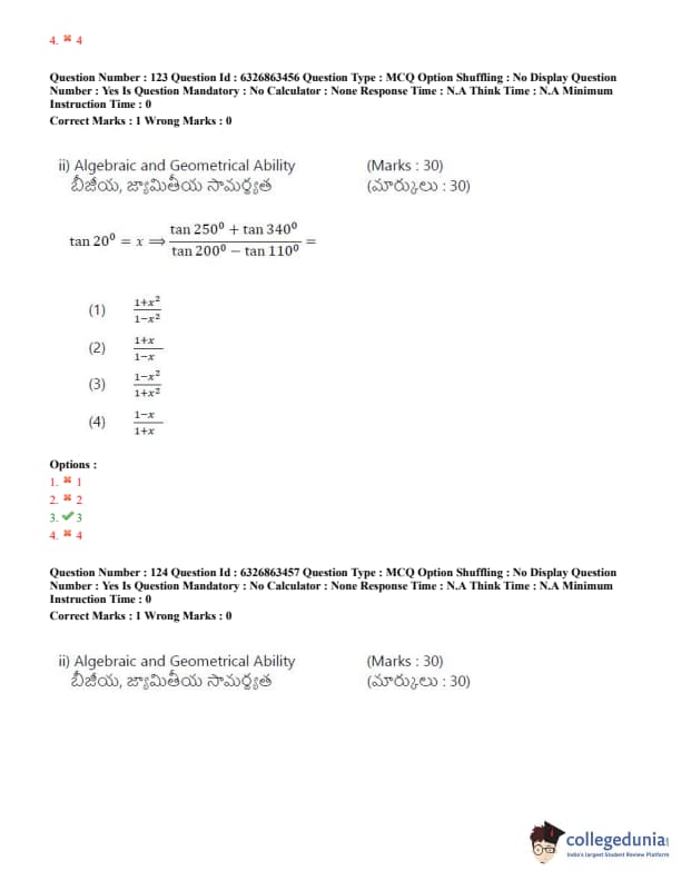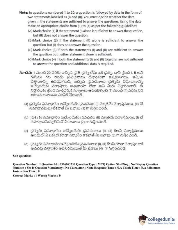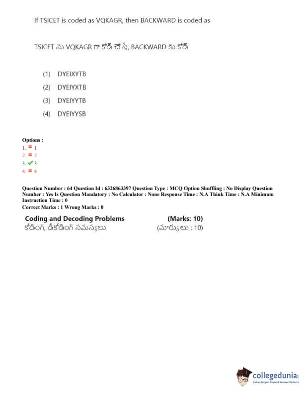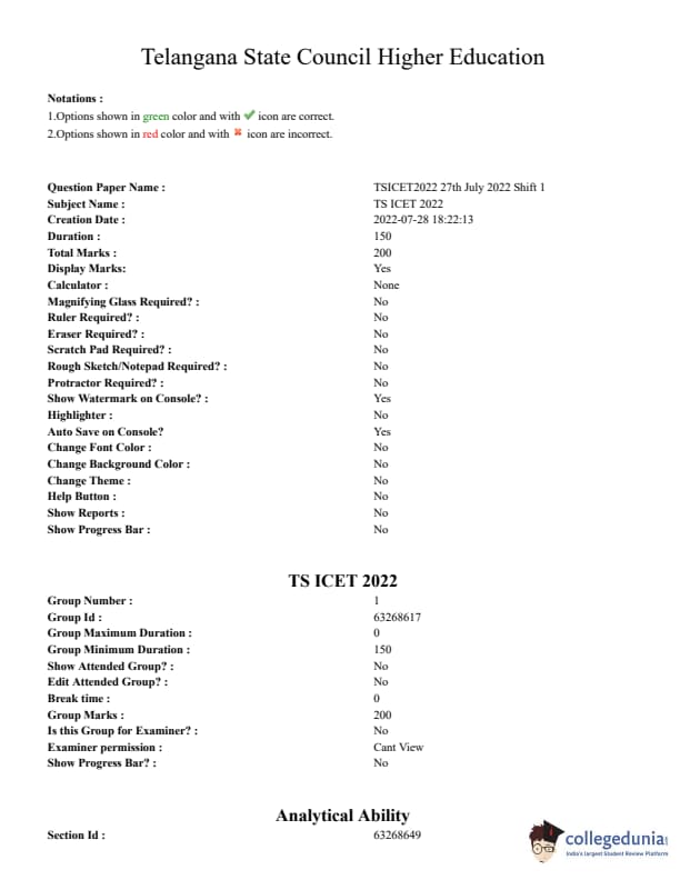 TSICET 2022 Question Paper with Answer Key PDF (July 27 - Shift 1)