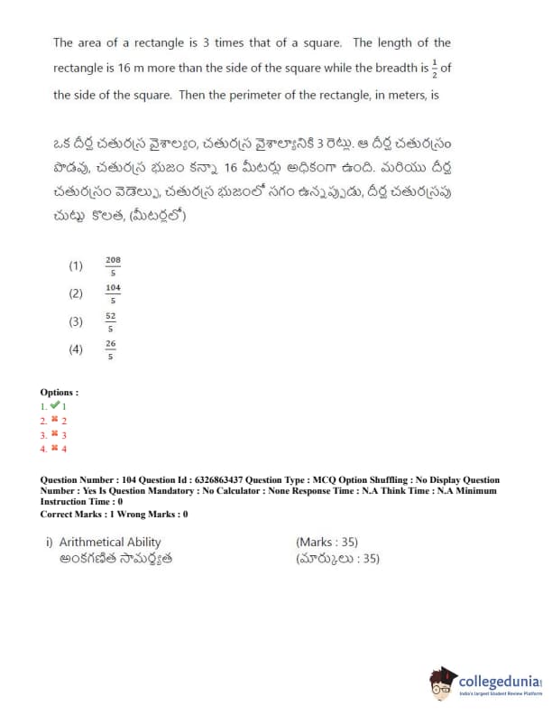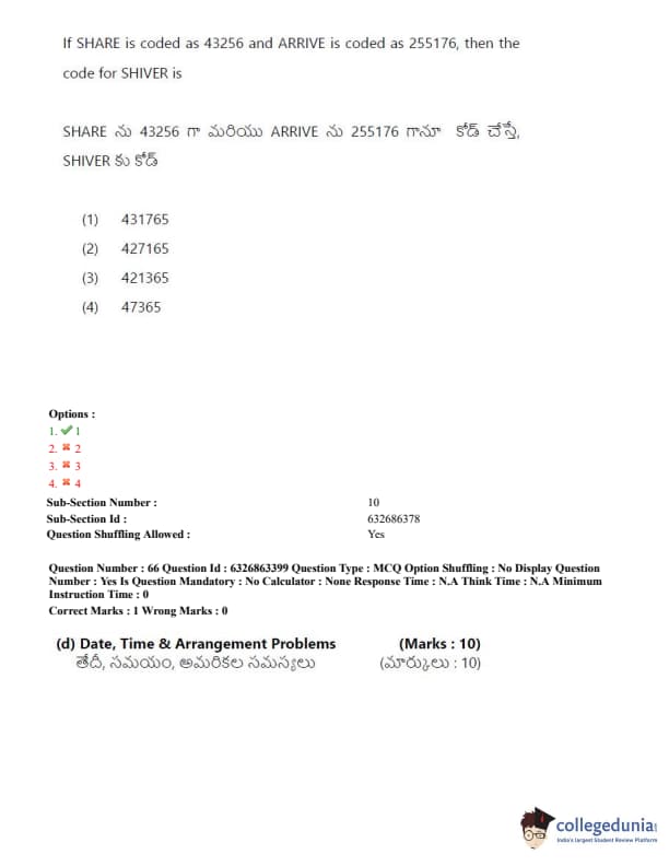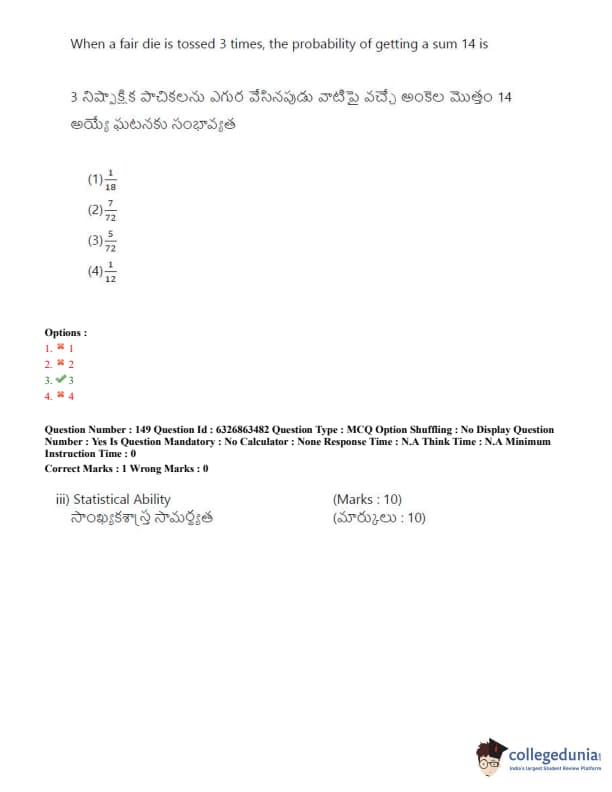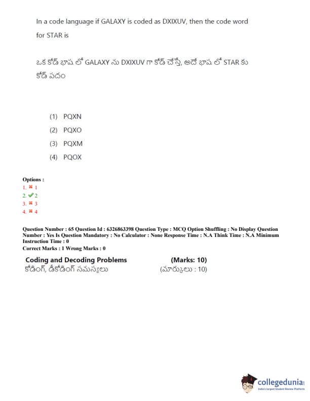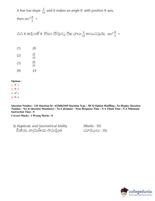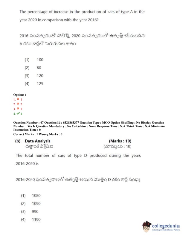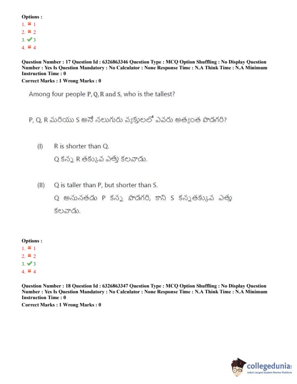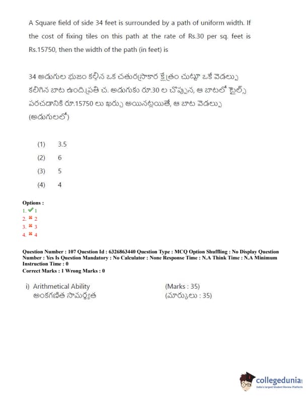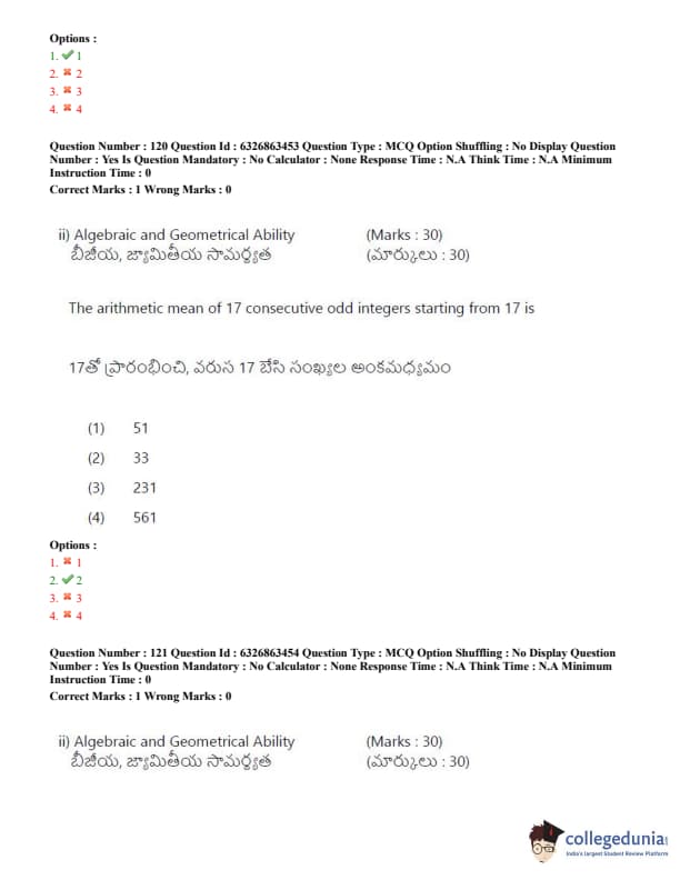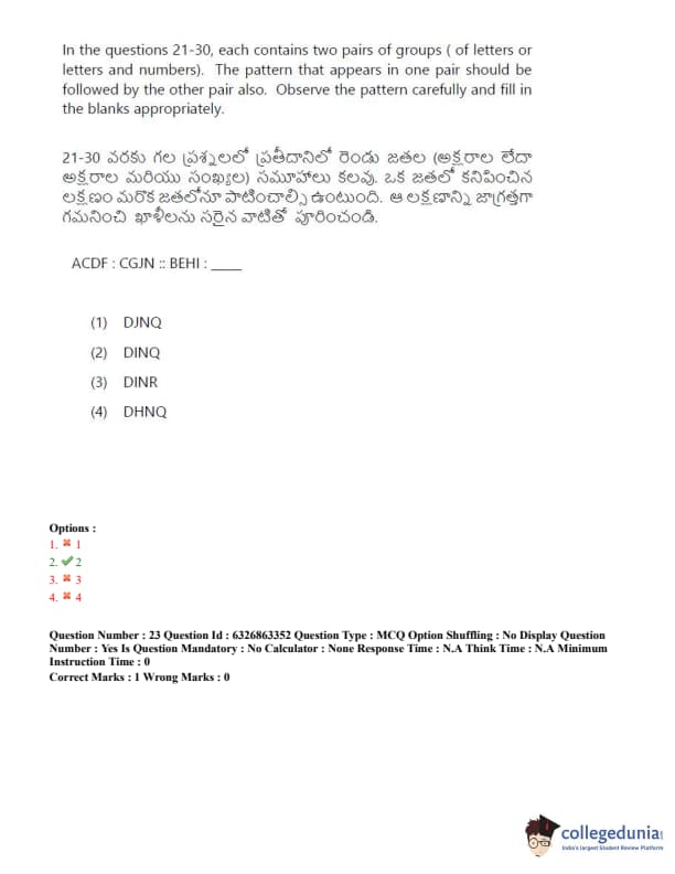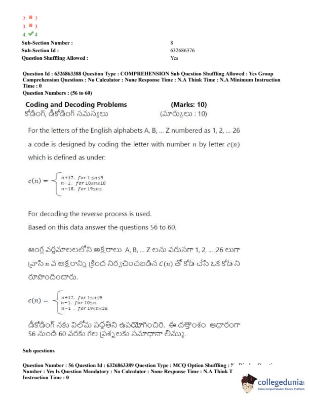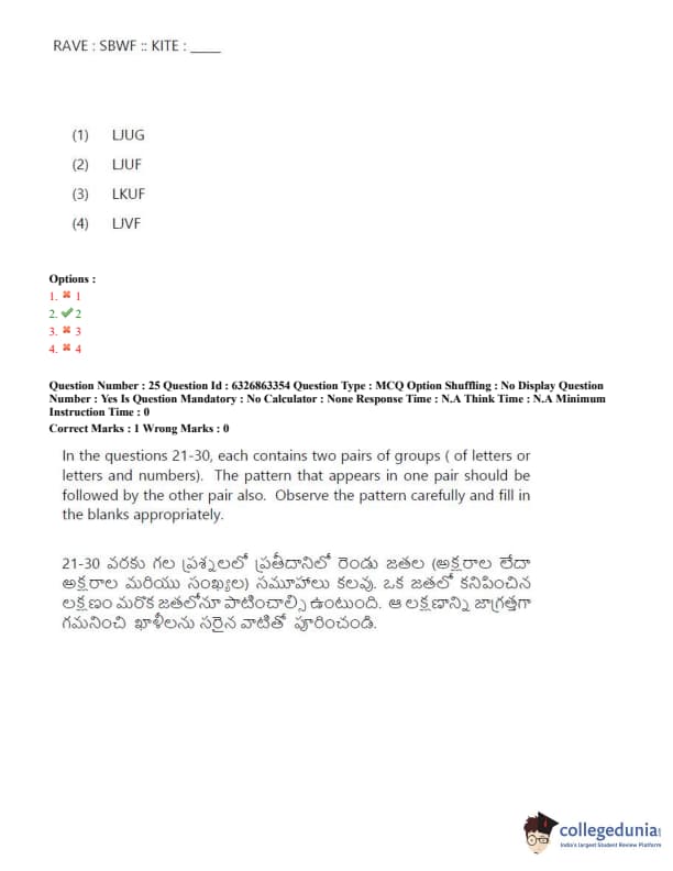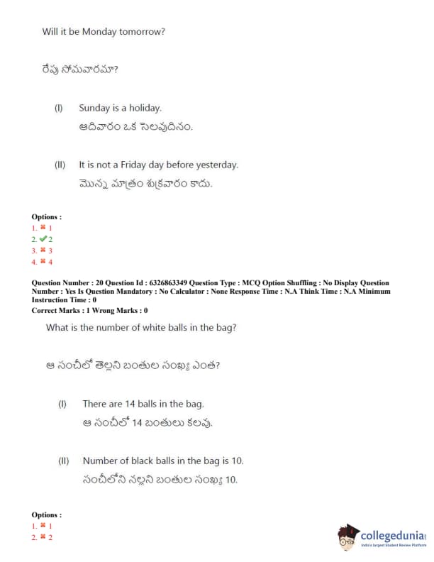 TSICET 2022 Question Paper with Answer Key PDF (July 27 - Shift 1)