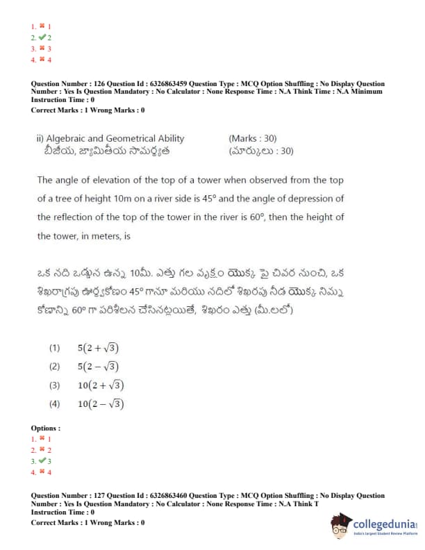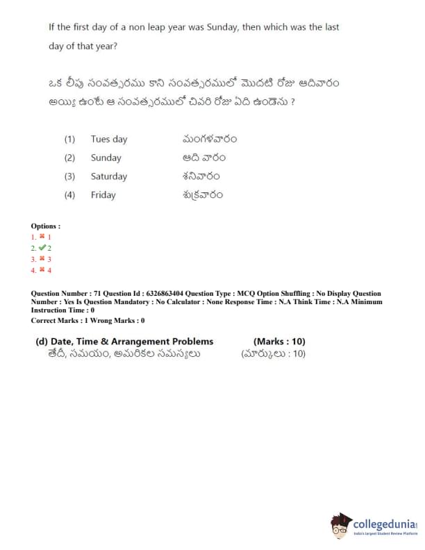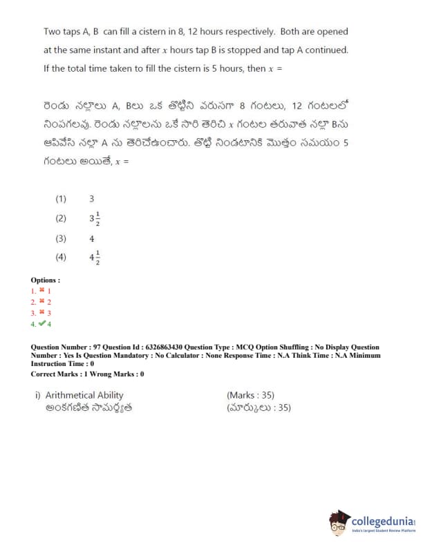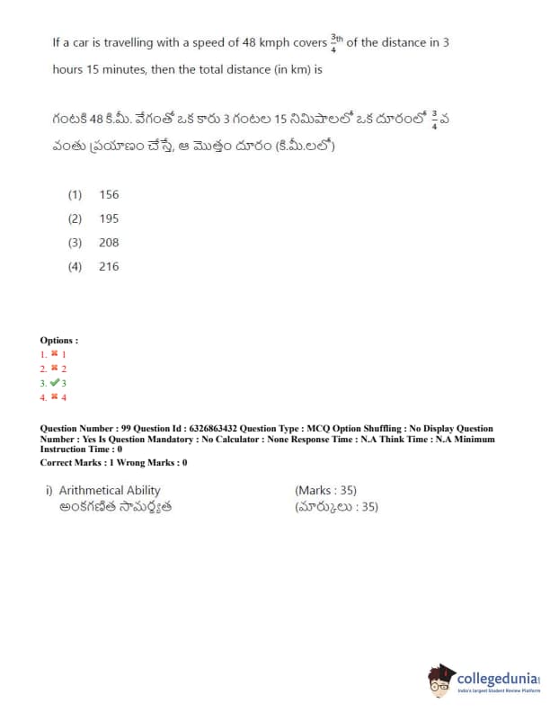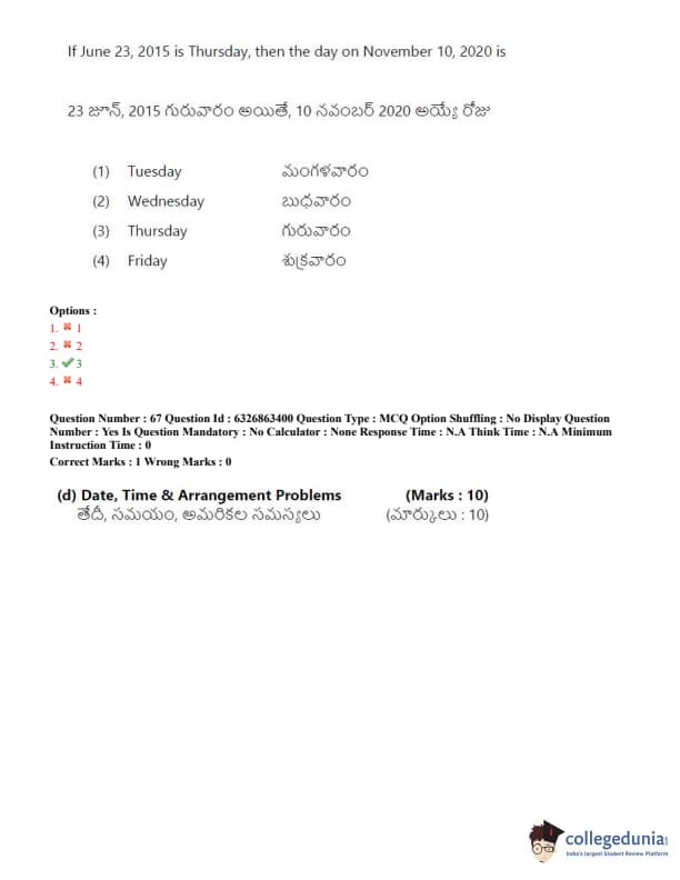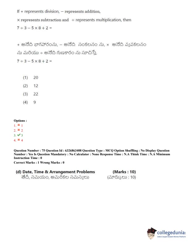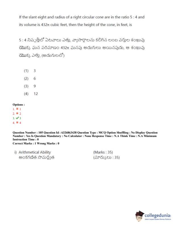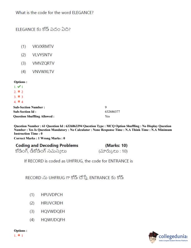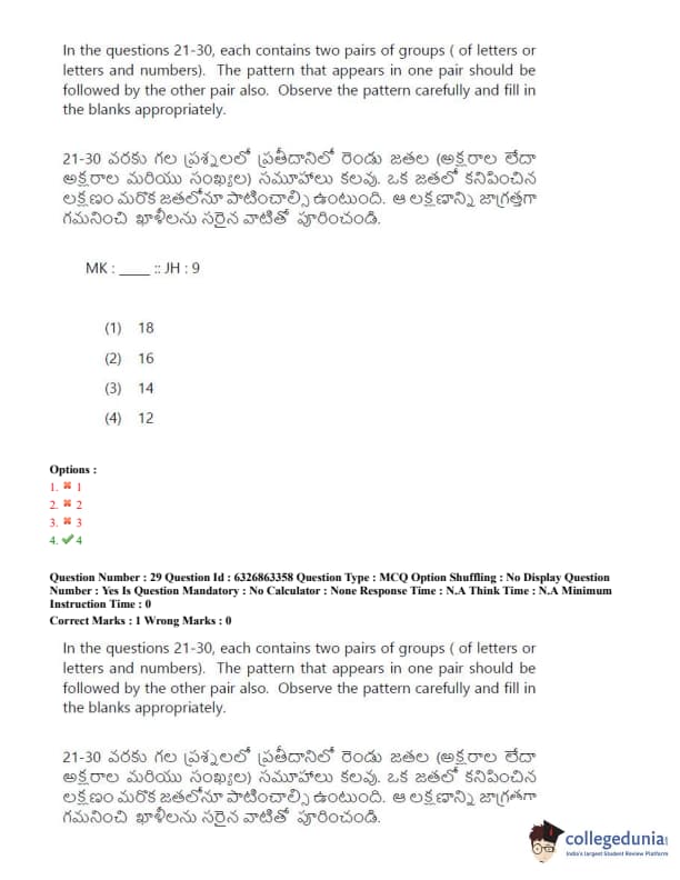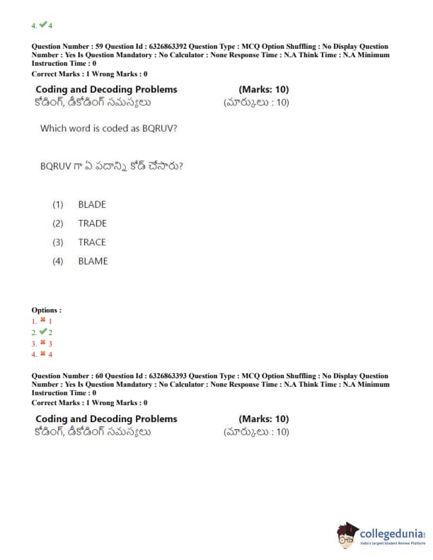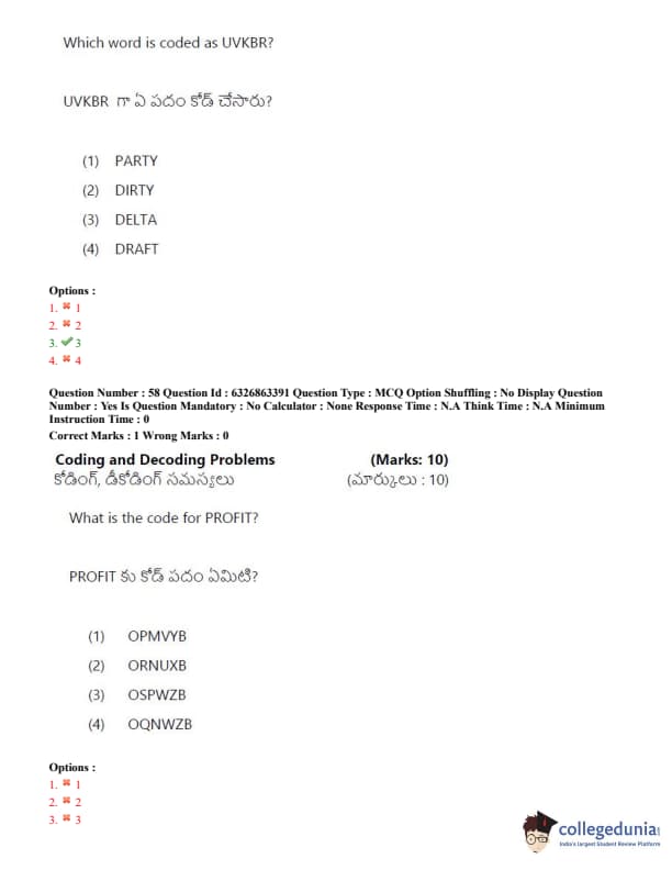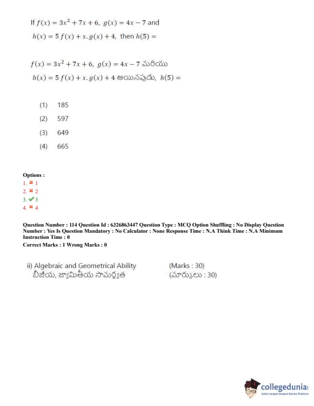 TSICET 2022 Question Paper with Answer Key PDF (July 27 - Shift 1)