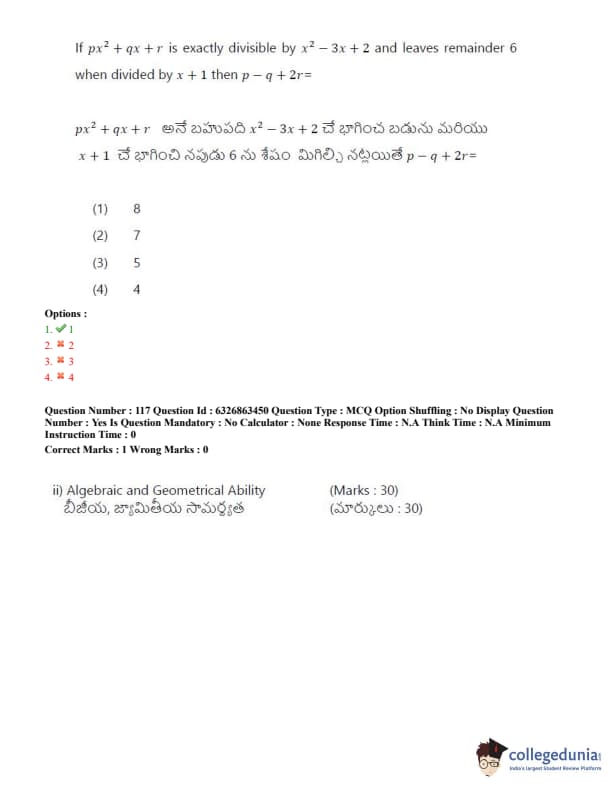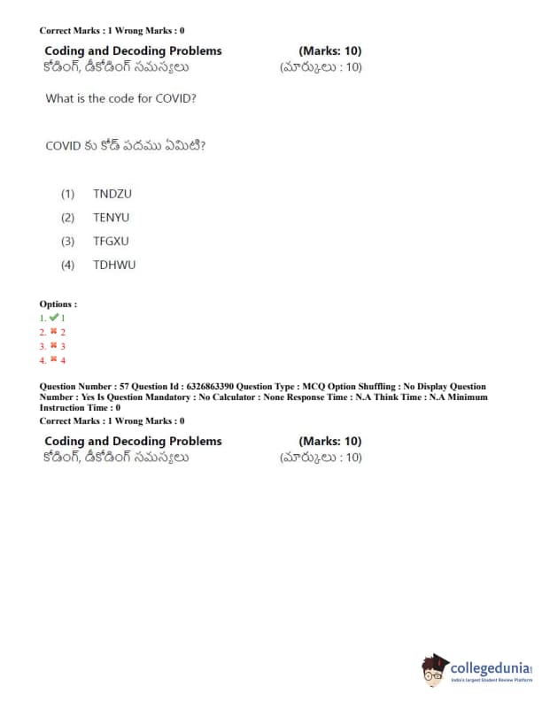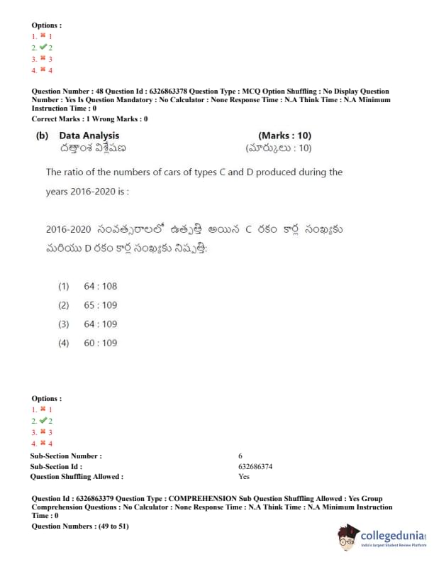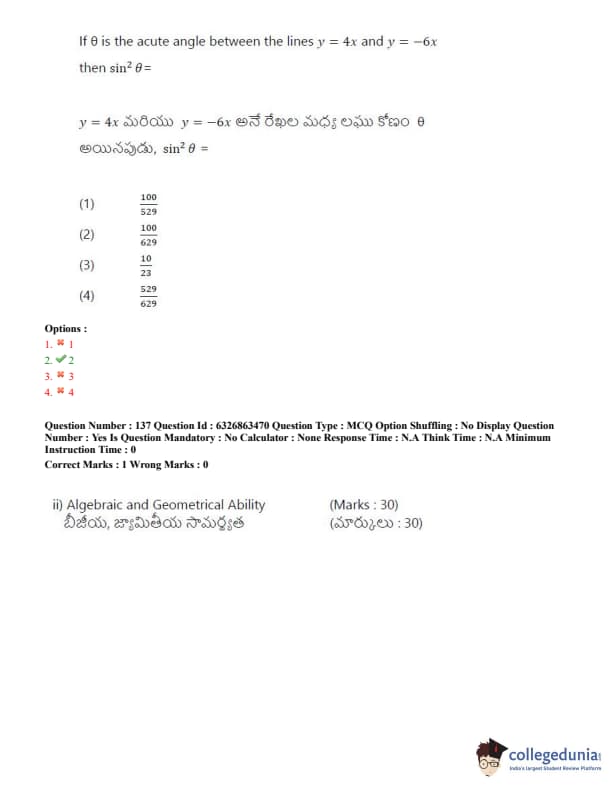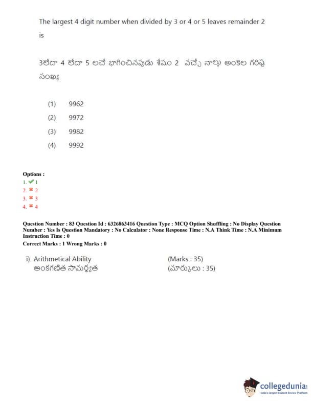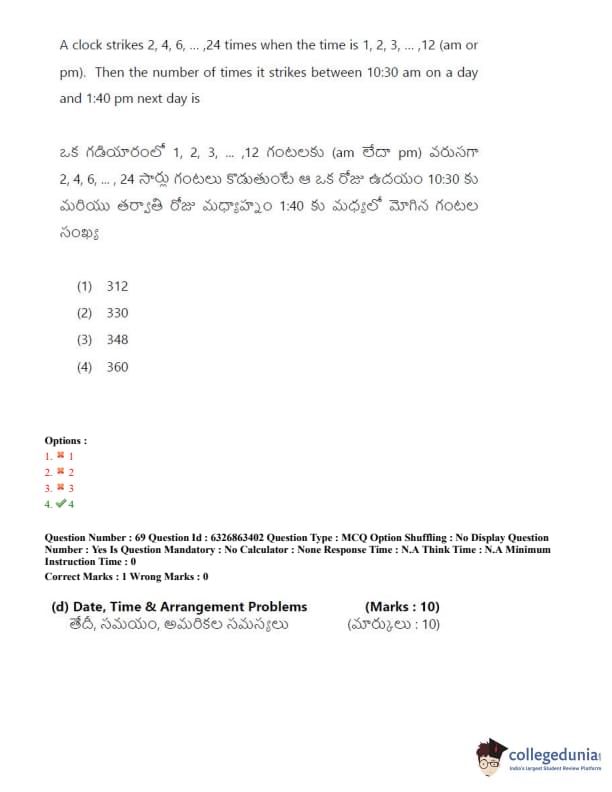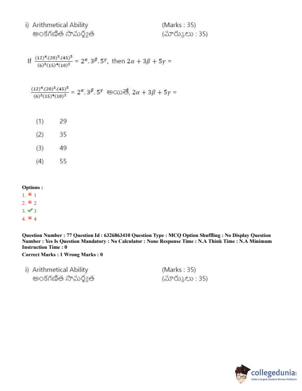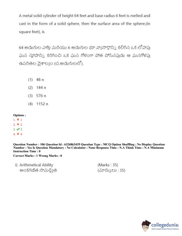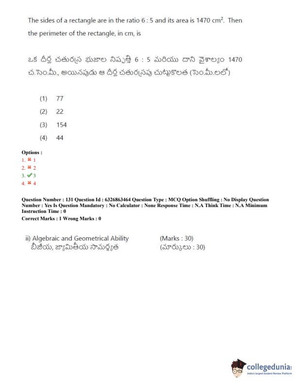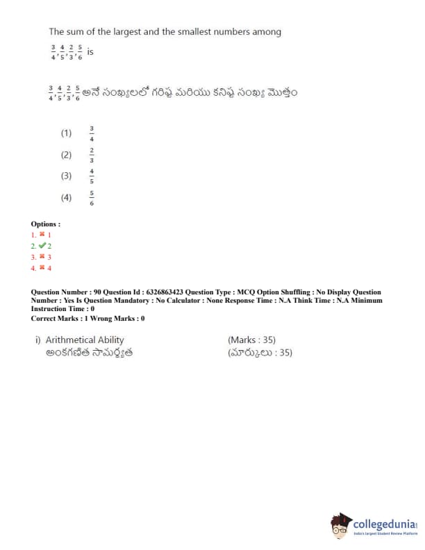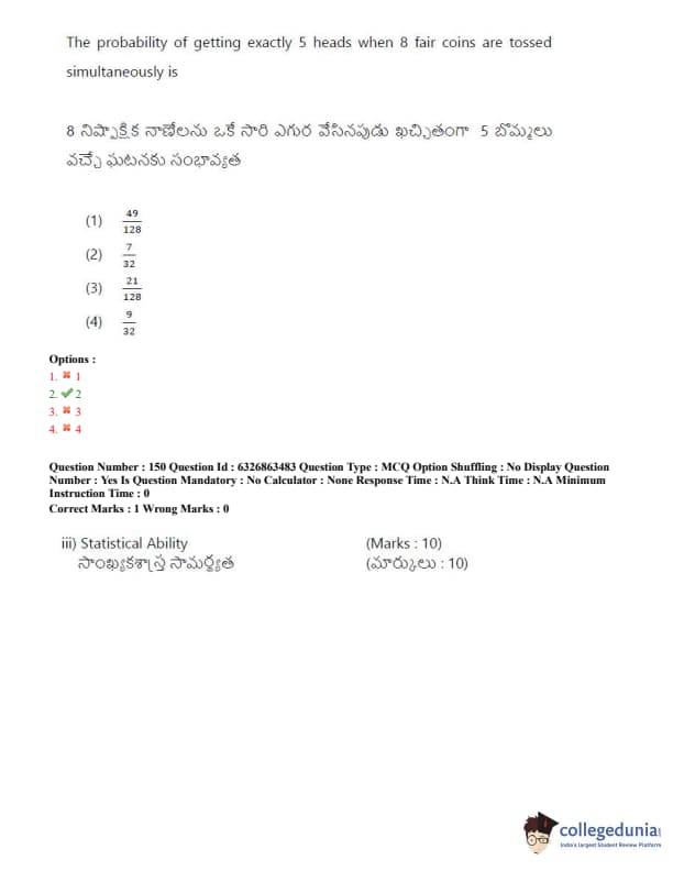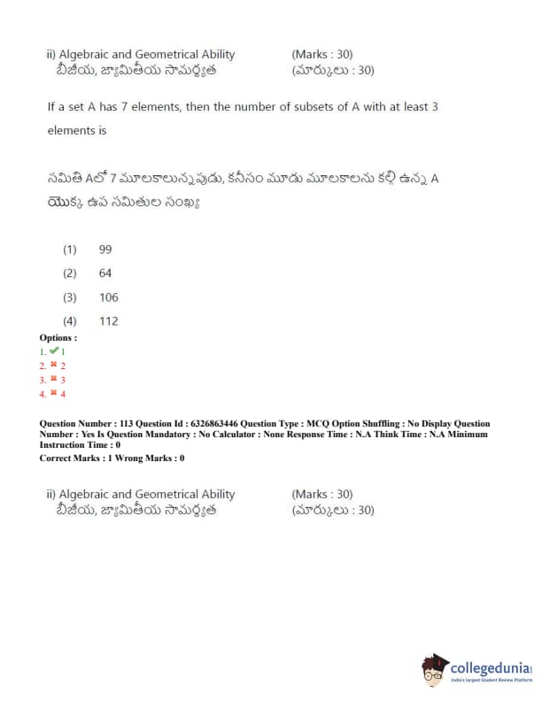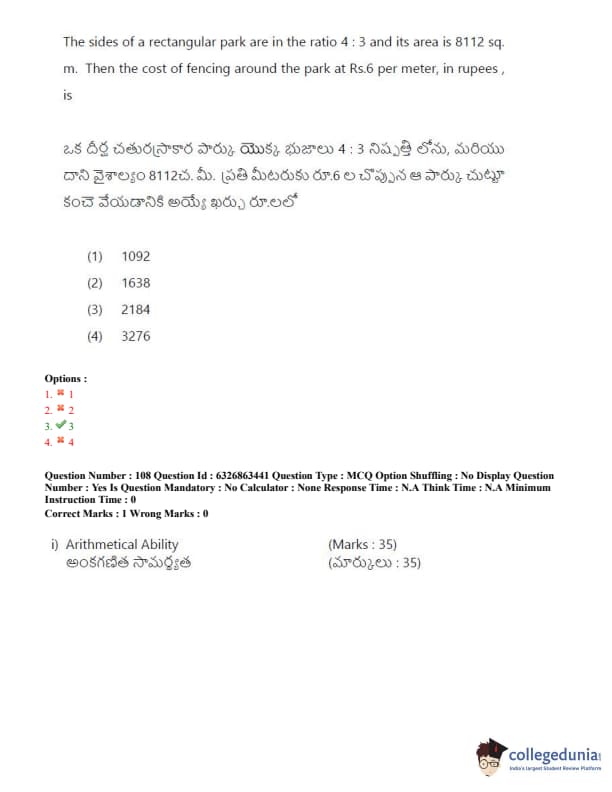 TSICET 2022 Question Paper with Answer Key PDF (July 27 - Shift 1)