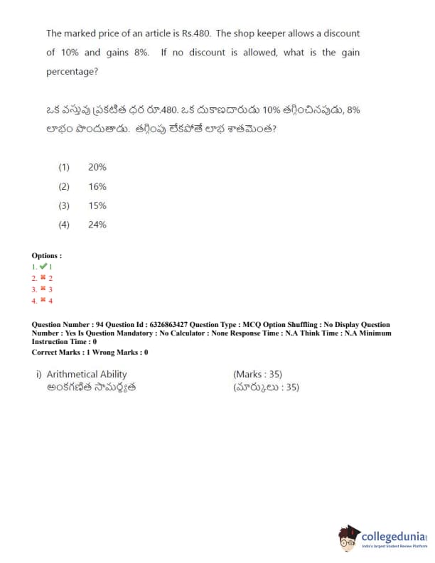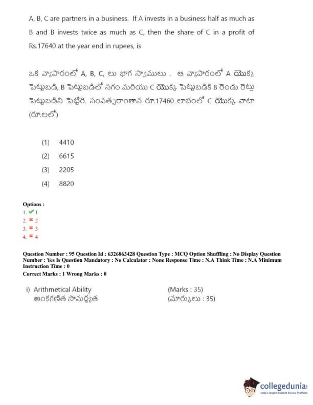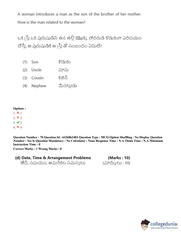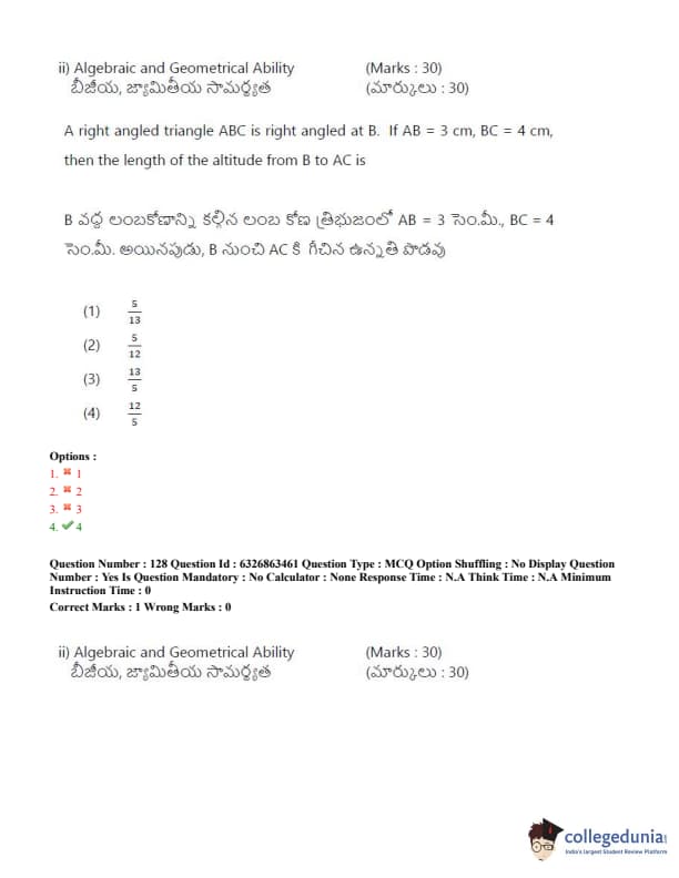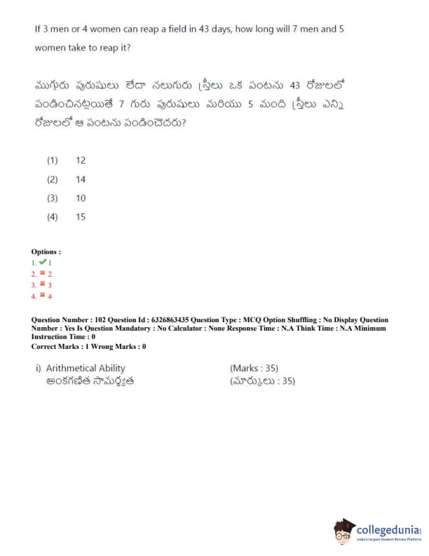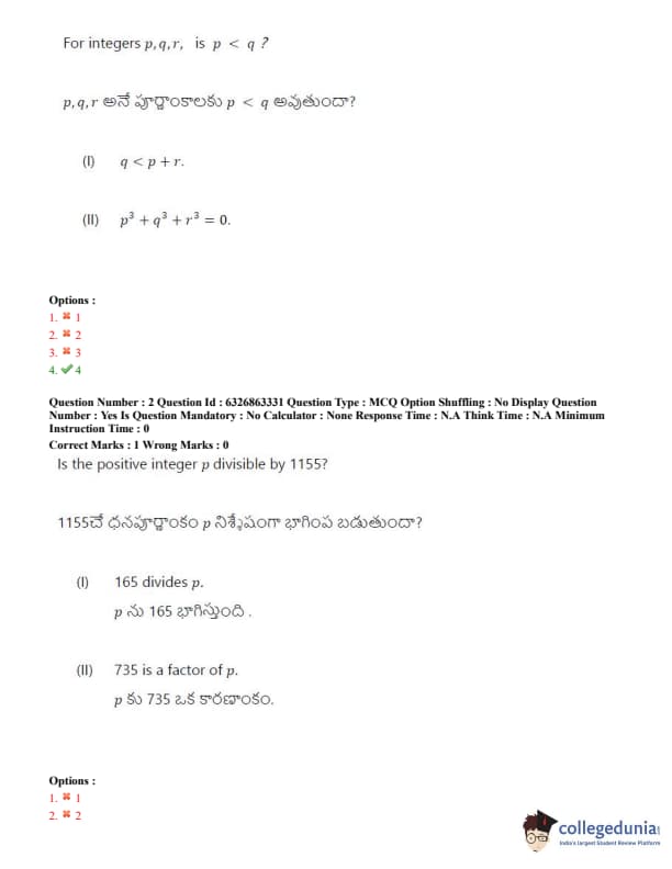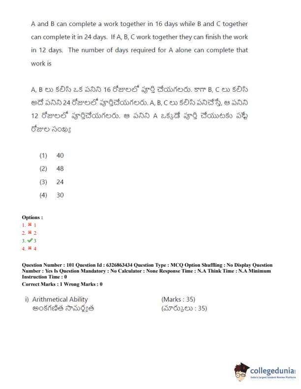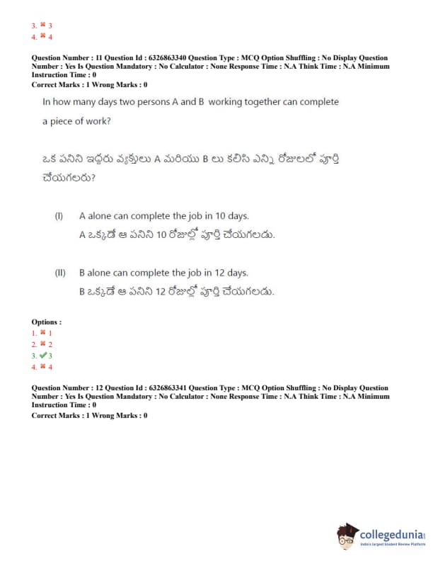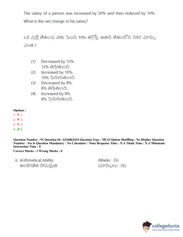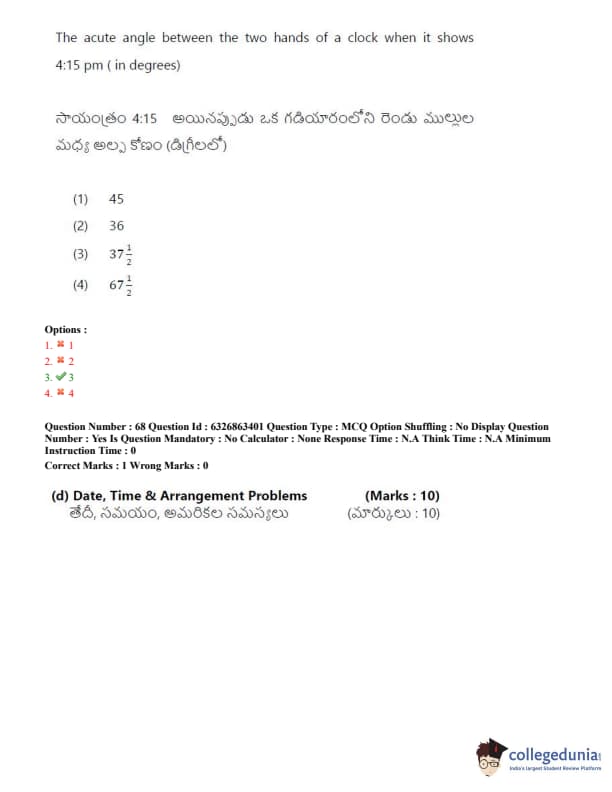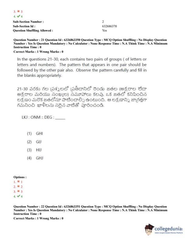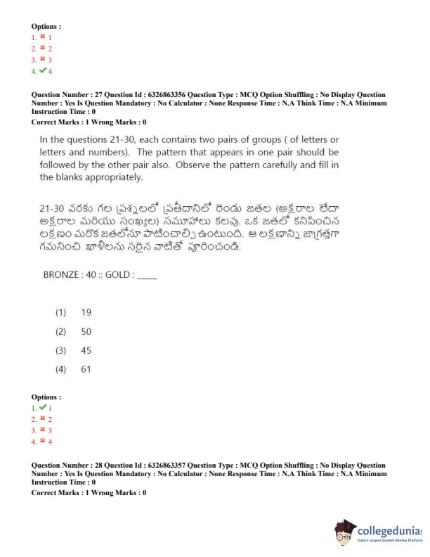 TSICET 2022 Question Paper with Answer Key PDF (July 27 - Shift 1)