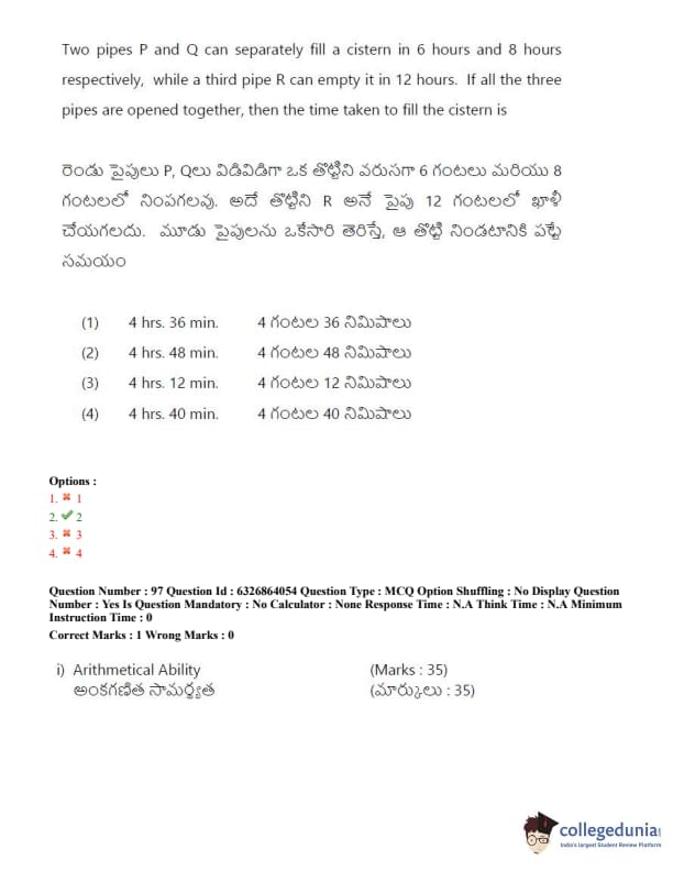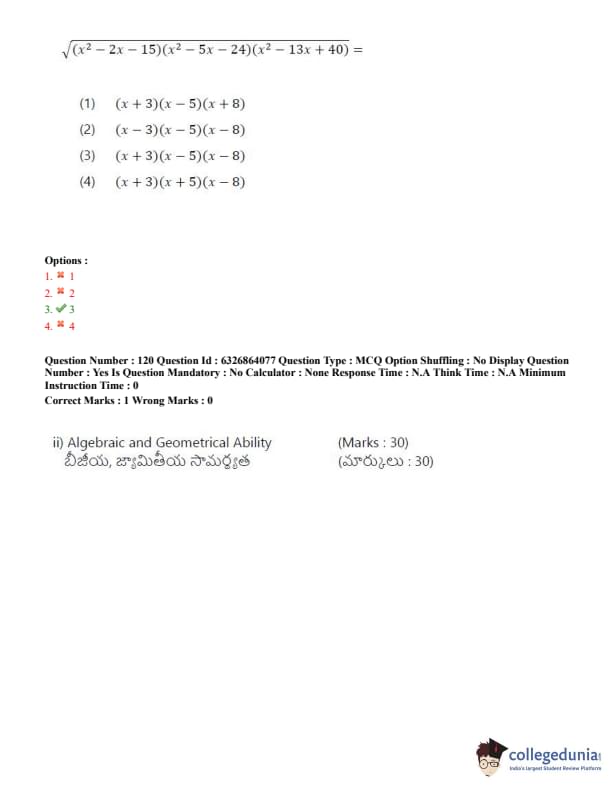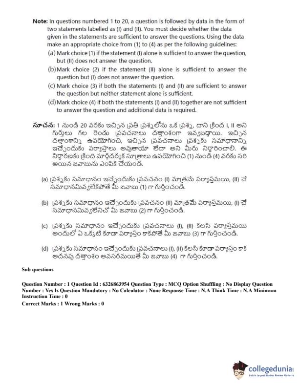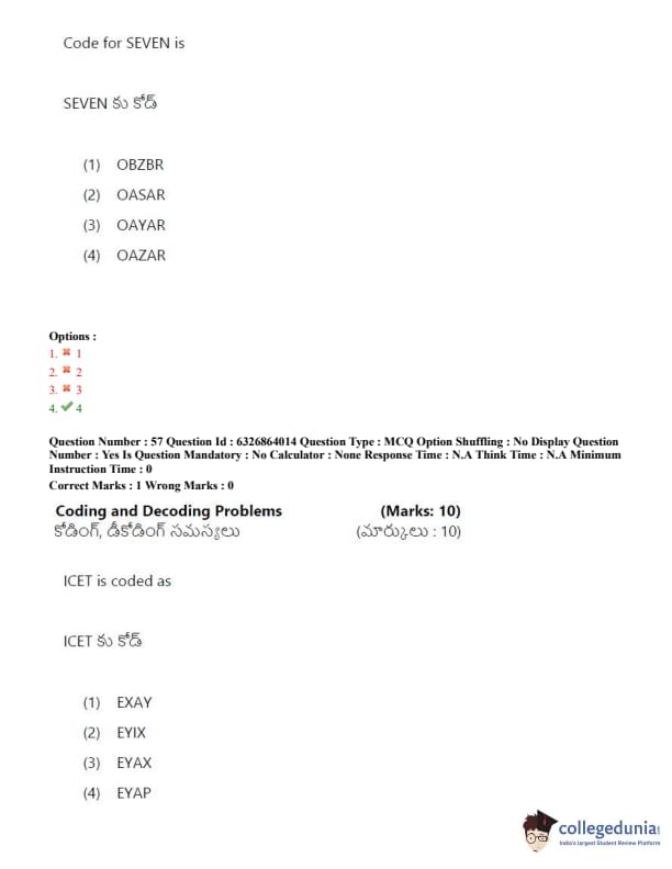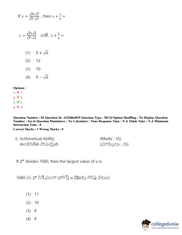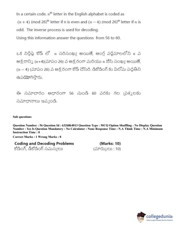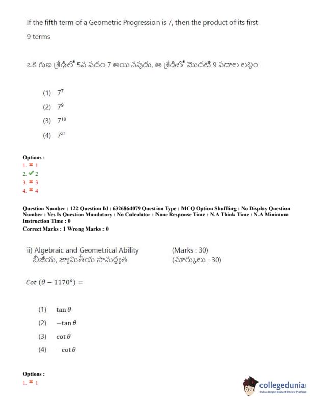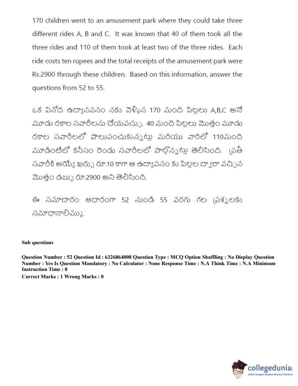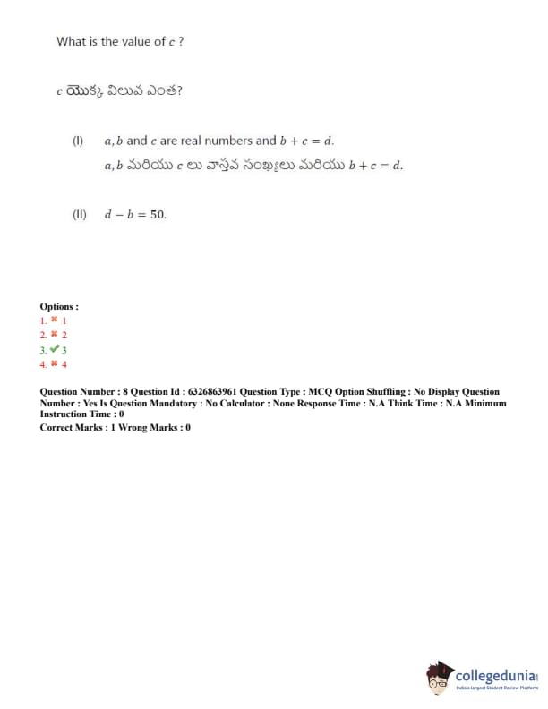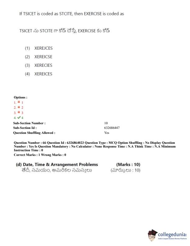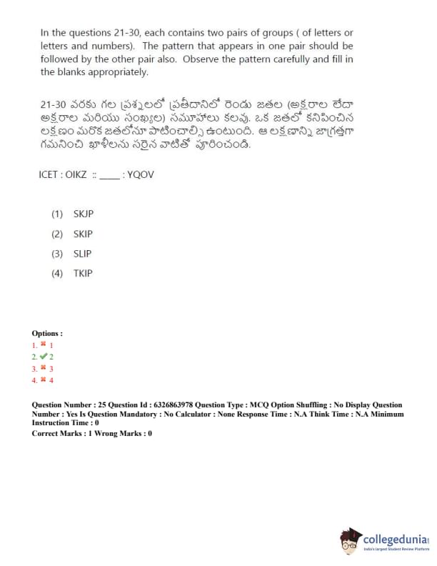 TSICET 2022 Question Paper with Answer Key PDF (July 27 - Shift 2)