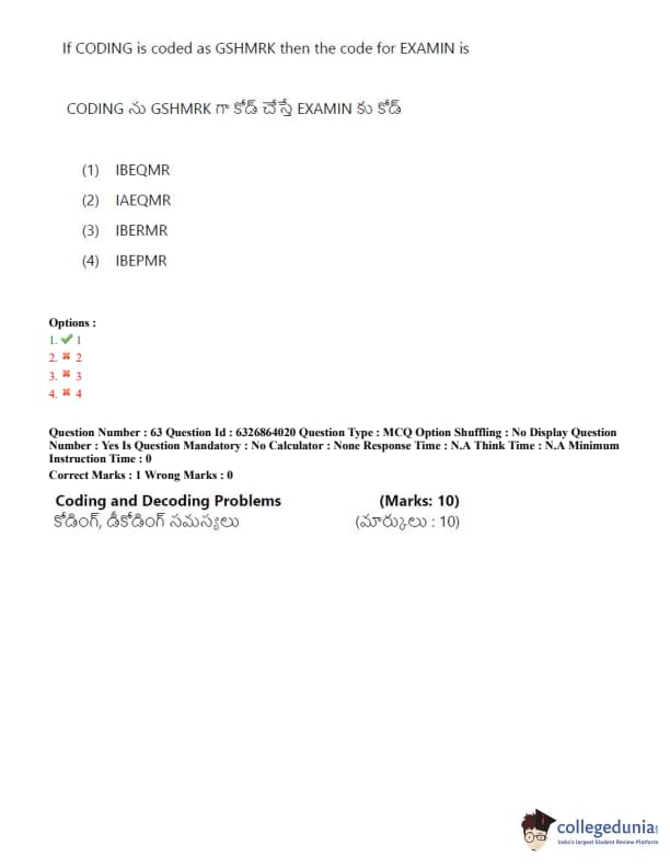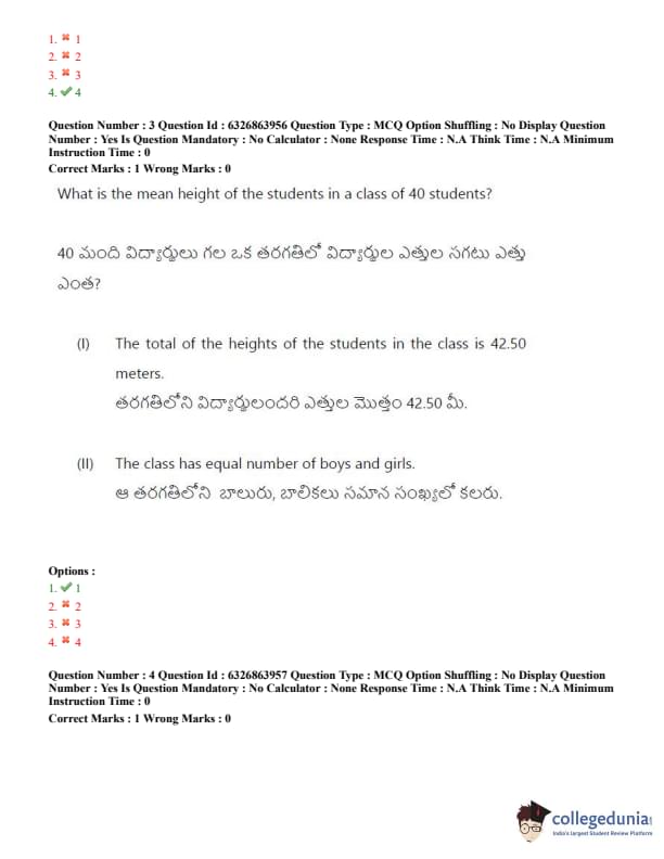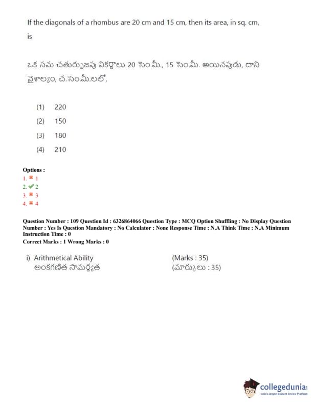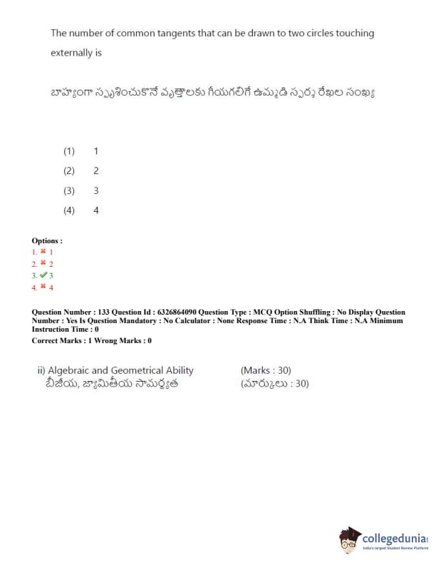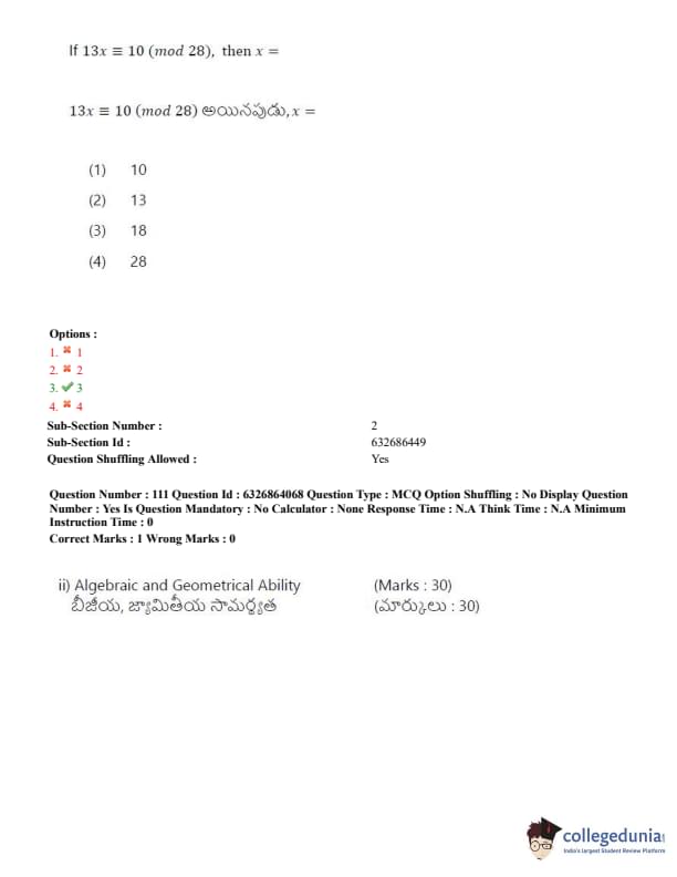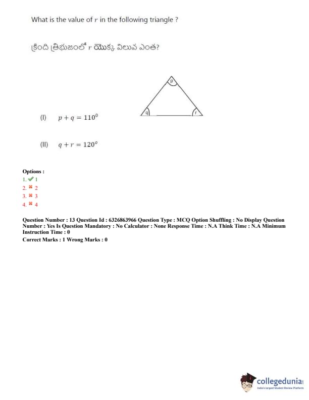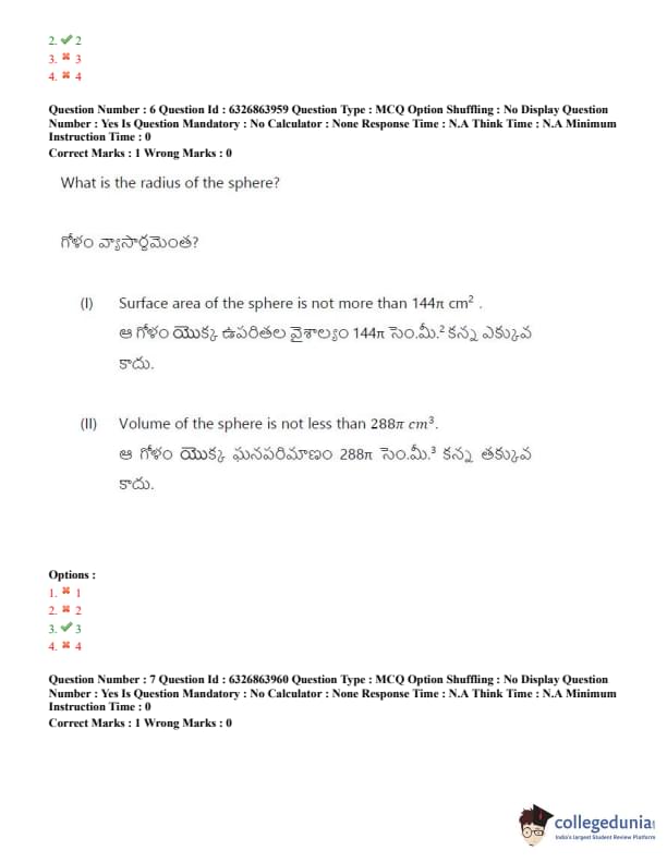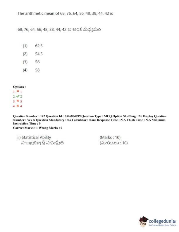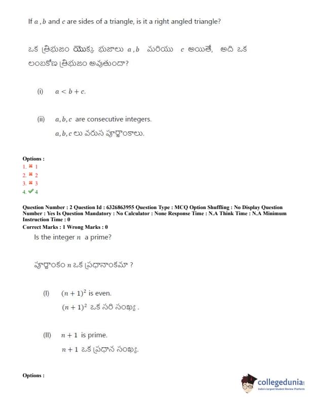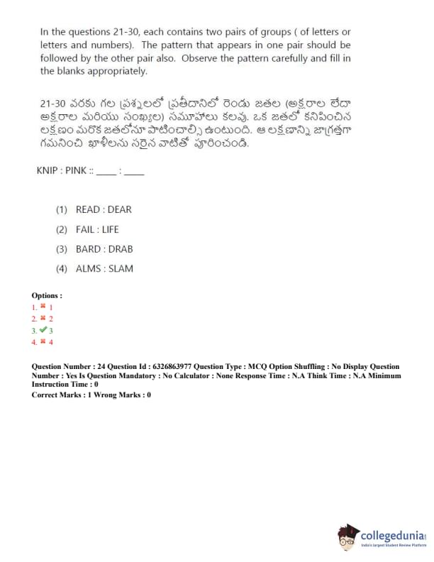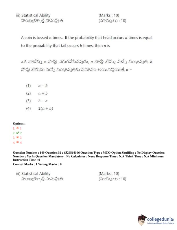 TSICET 2022 Question Paper with Answer Key PDF (July 27 - Shift 2)