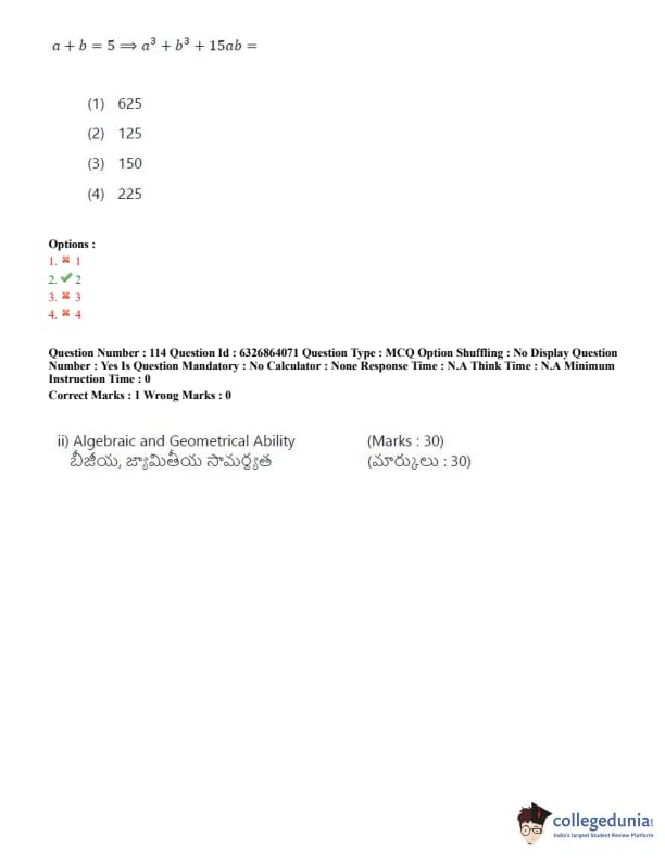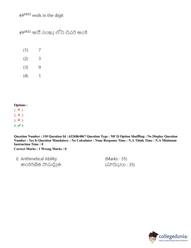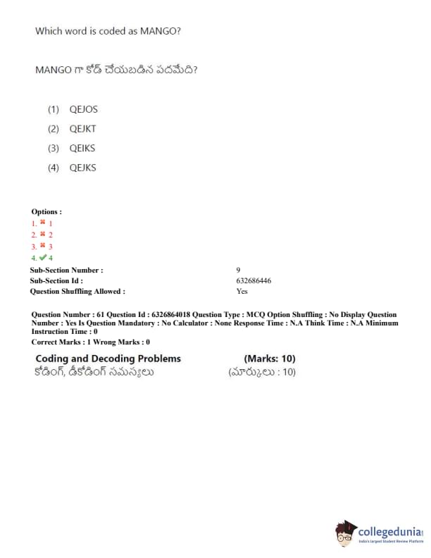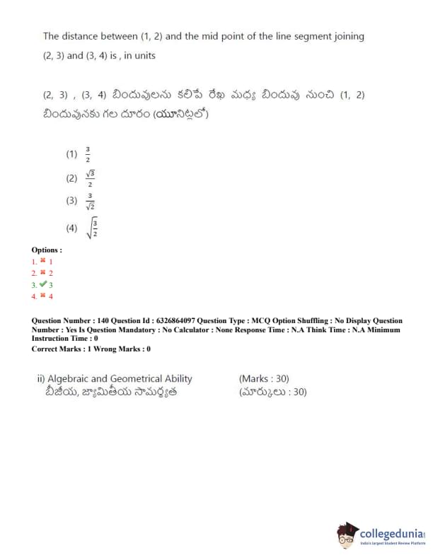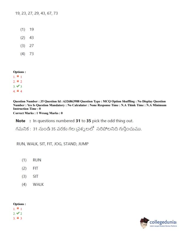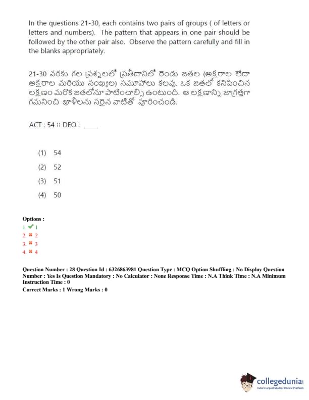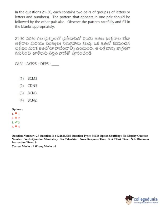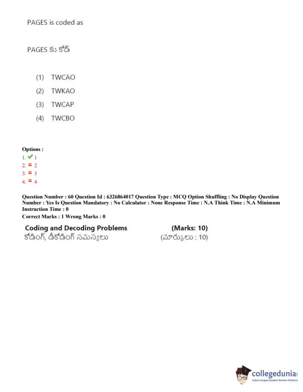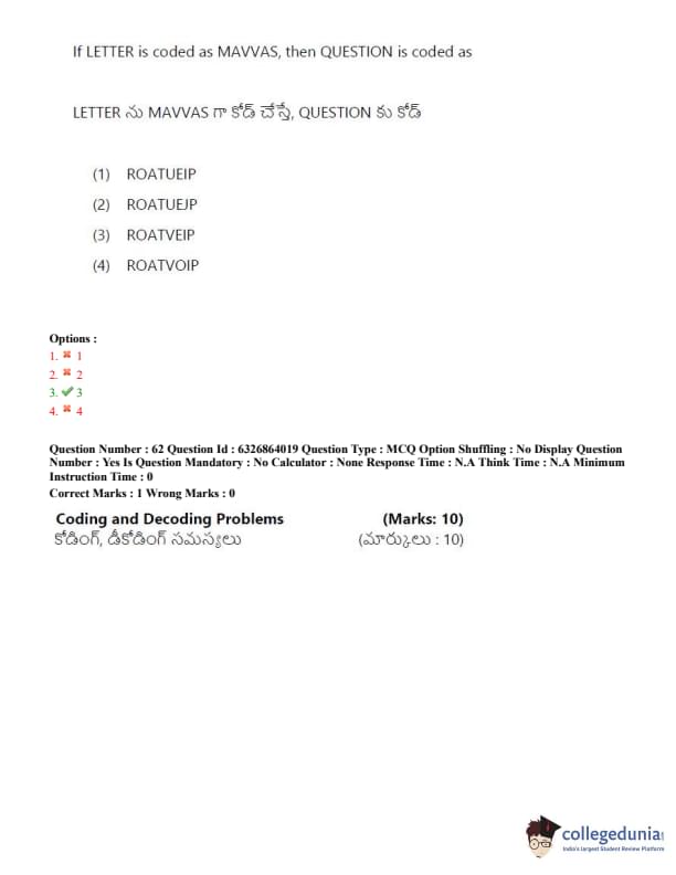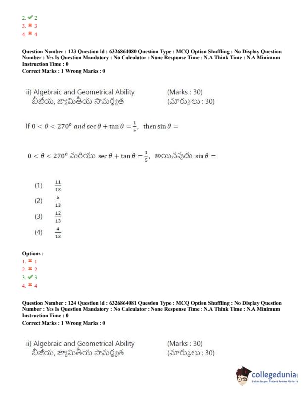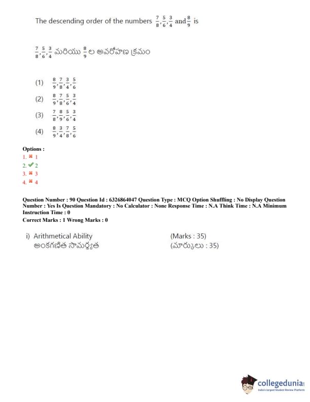 TSICET 2022 Question Paper with Answer Key PDF (July 27 - Shift 2)