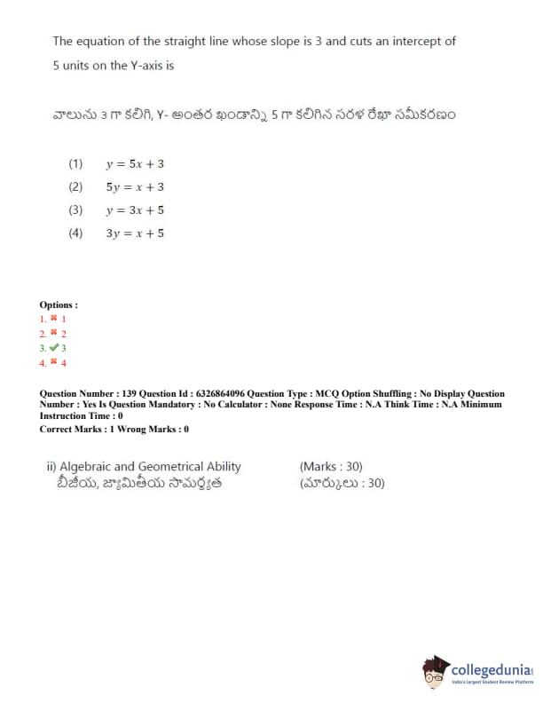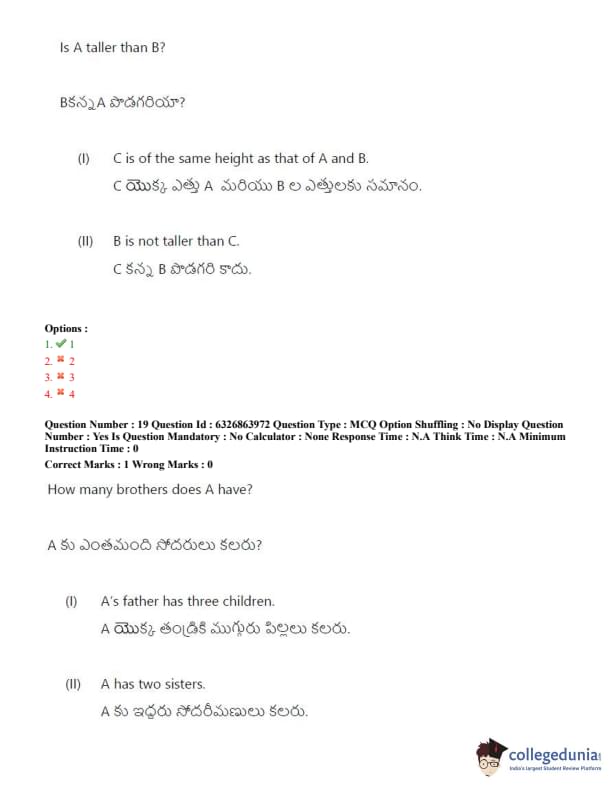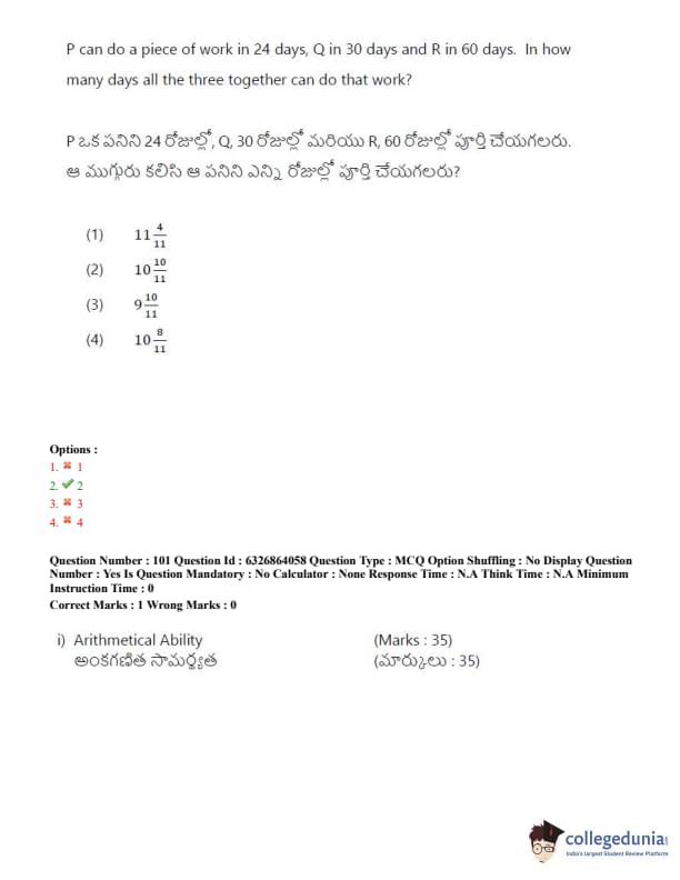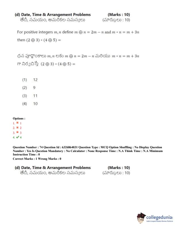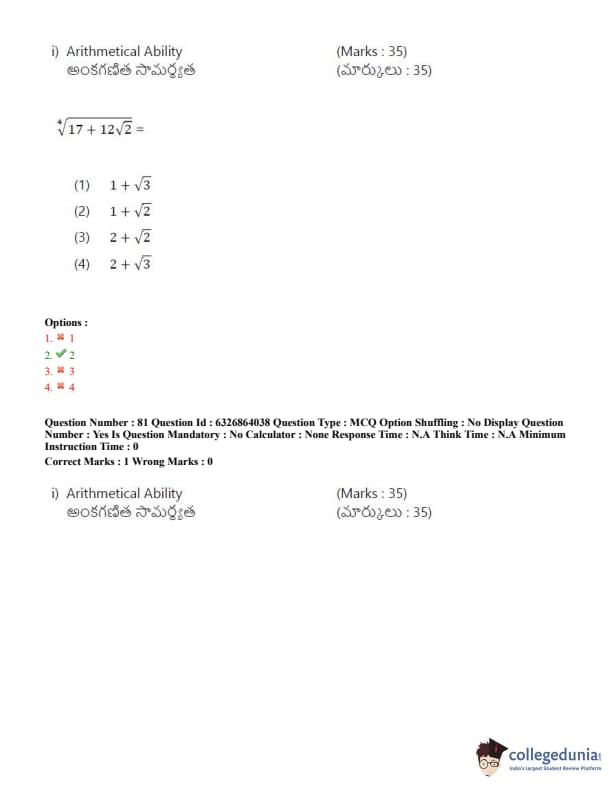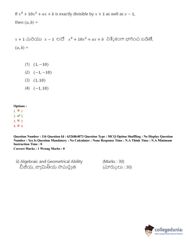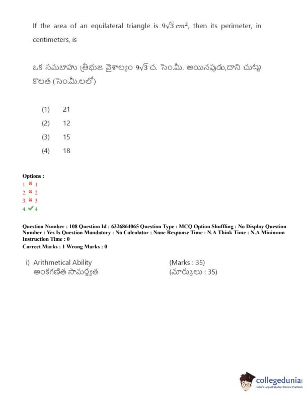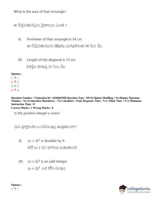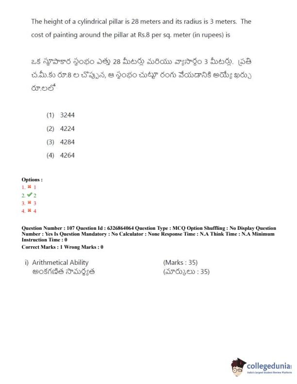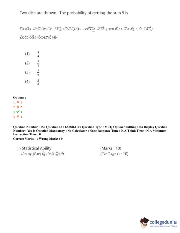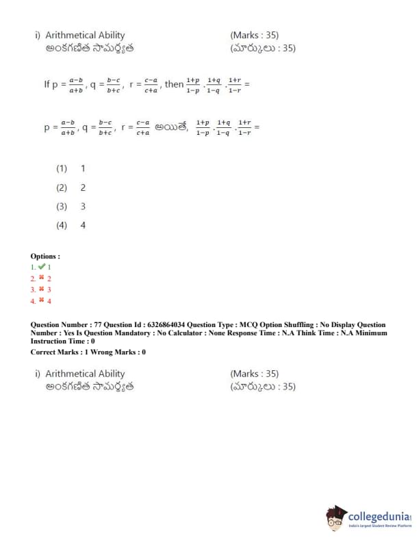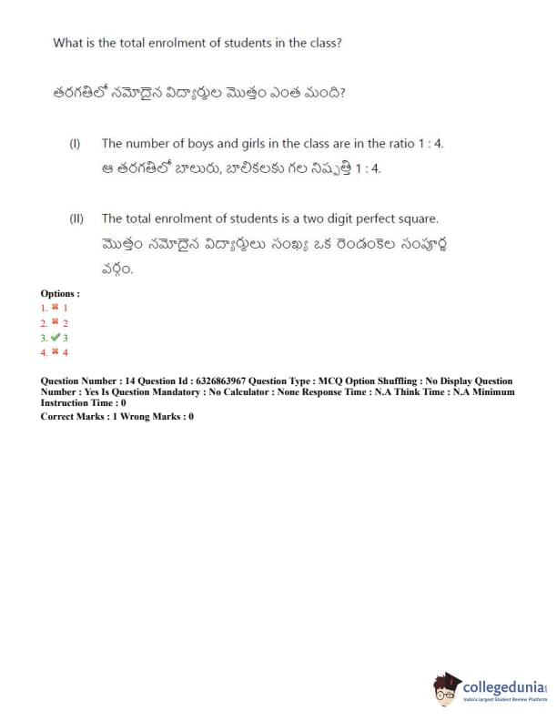 TSICET 2022 Question Paper with Answer Key PDF (July 27 - Shift 2)